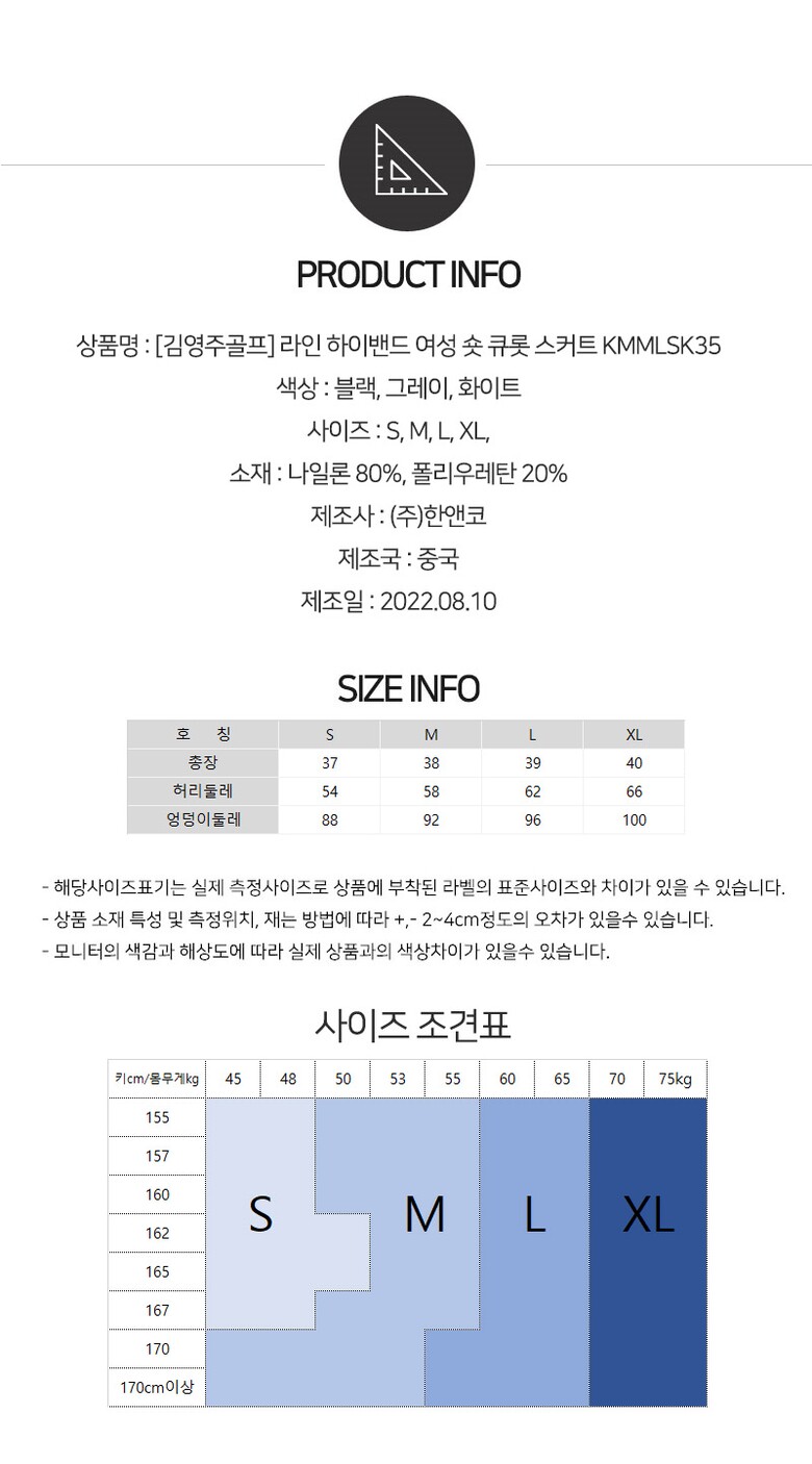 [김영주골프] 라인 하이밴드 여성 숏큐롯 스커트 KMMLSK35