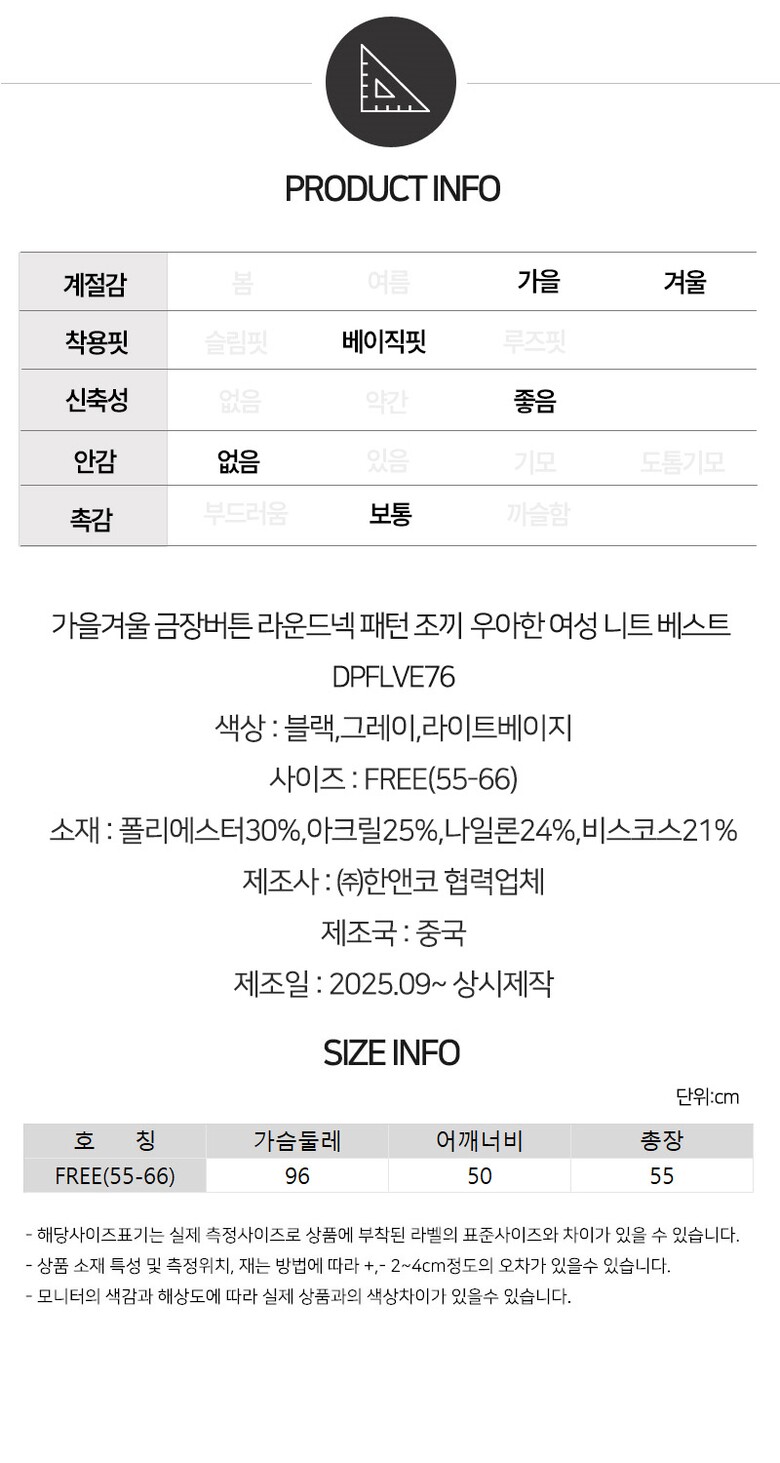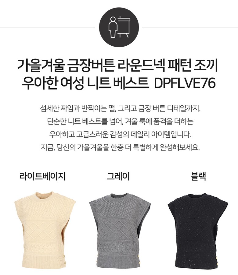 [김영주골프] 가을겨울 금장버튼 라운드넥 패턴 조끼 우아한 여성 니트 베스트 DPFLVE76