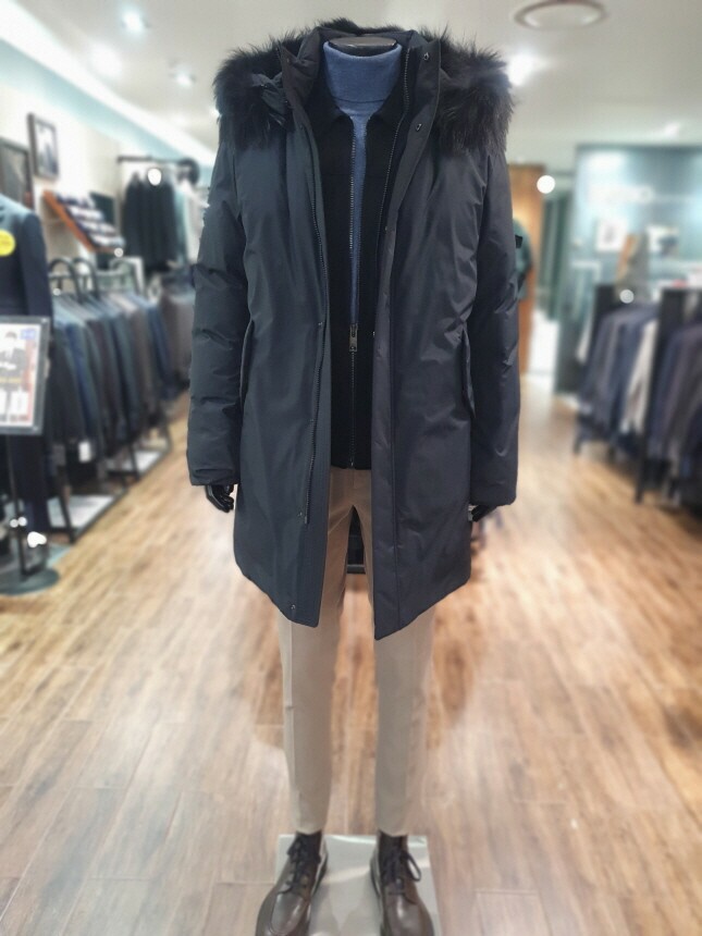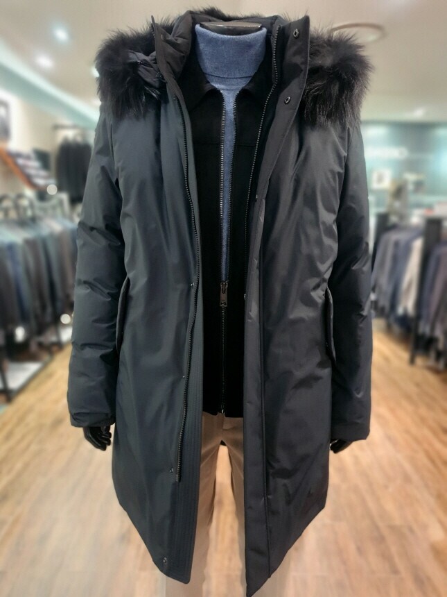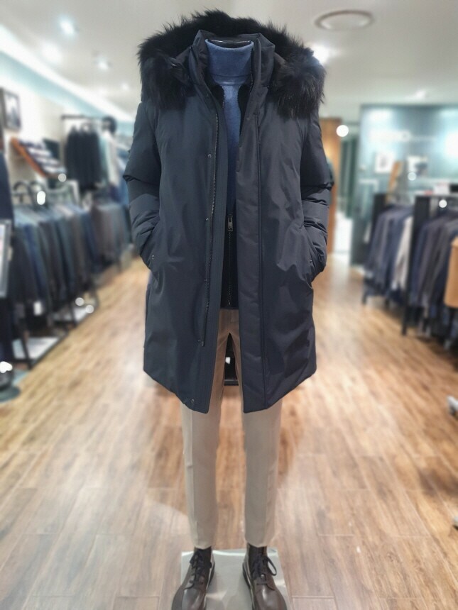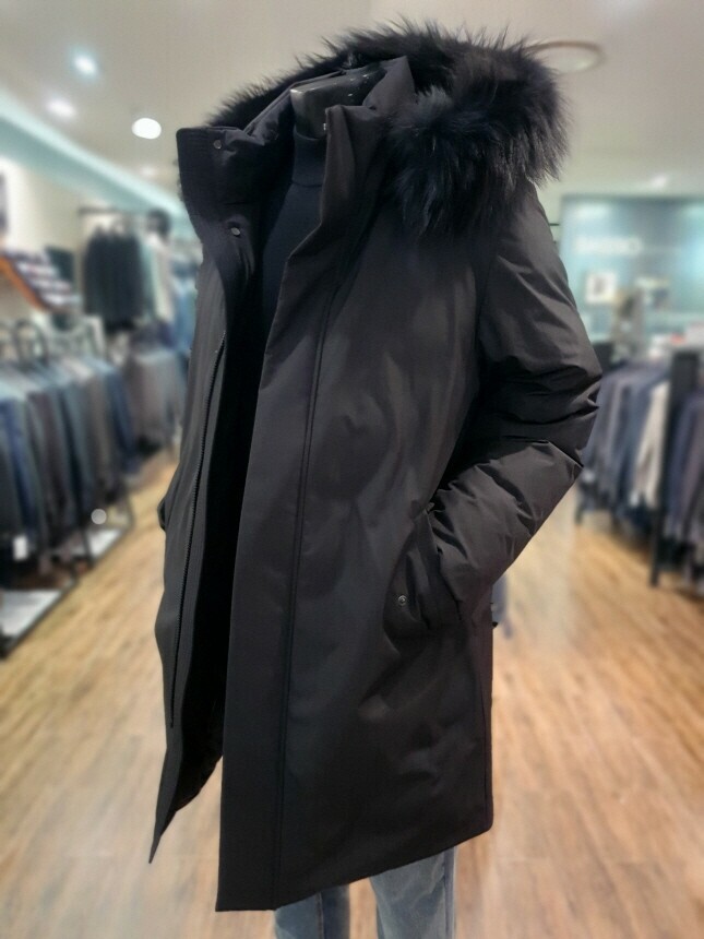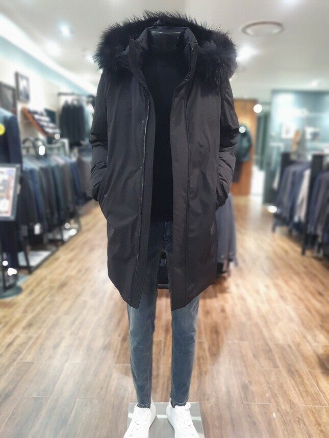 [바쏘옴므] F/W 불랙 폭스퍼후드 라이트 덕다운점퍼 2종
