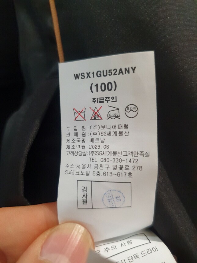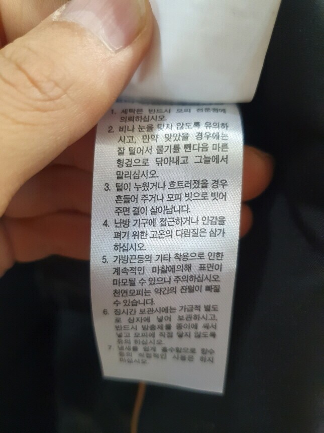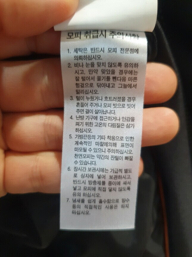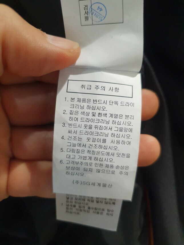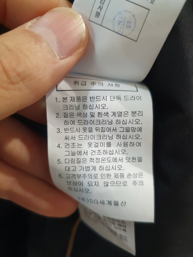 | 6. 세탁방법 및 취급시 주의사항 | 드라이크리닝 |