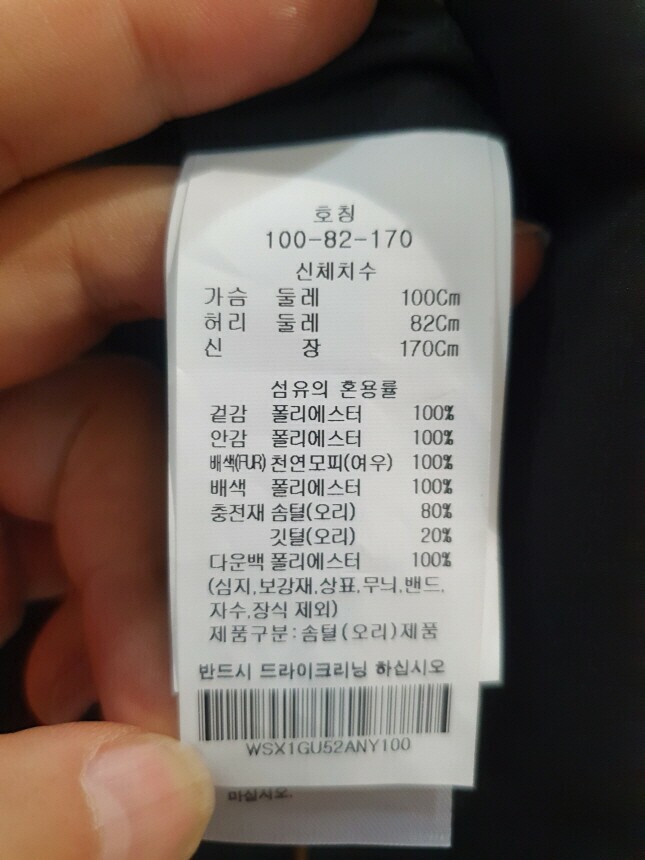 충전재 : 오리(솜털) 80% , 오리(깃털) 20%