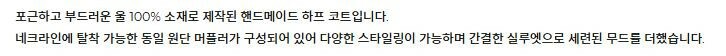 • 처음 배송된 상품상태와 다를 경우(세탁/착용 후 외출하신 경우) 반품이 불가합니다.