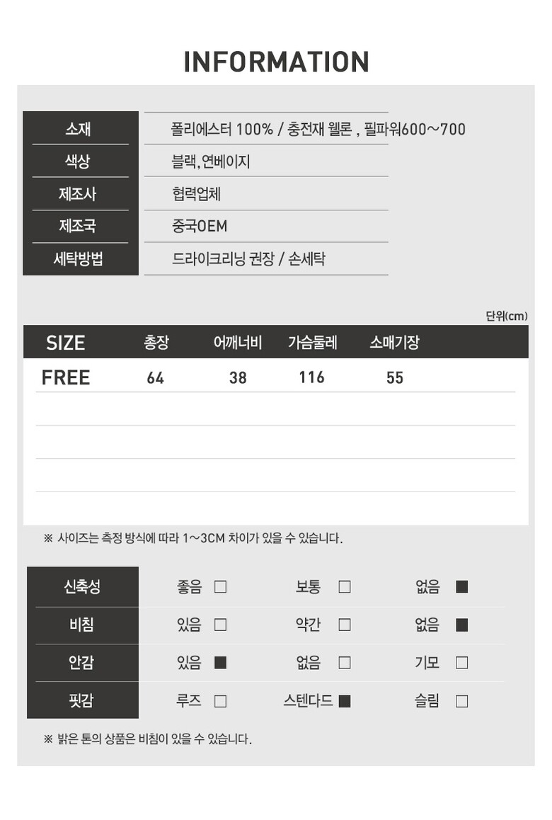 | 1. 제품 소재 (섬유의 조성 또는 혼용률을 백분율로 표시, 기능성인 경우 성적서 또는 허가서) | 상세페이지참고 |