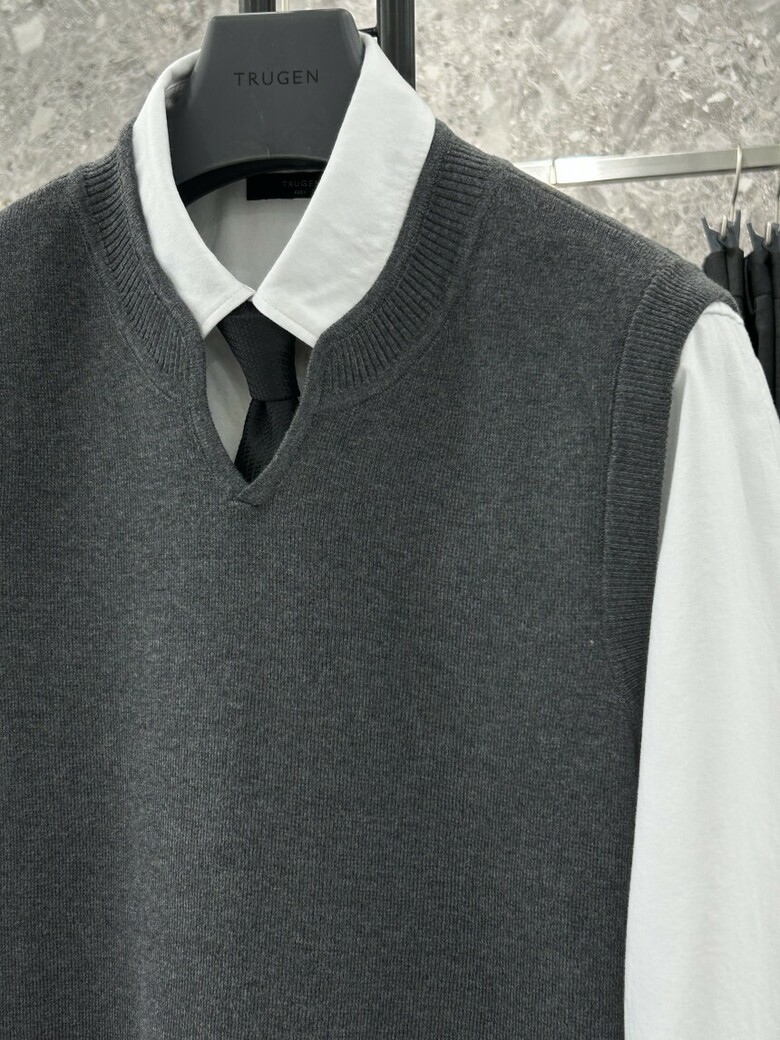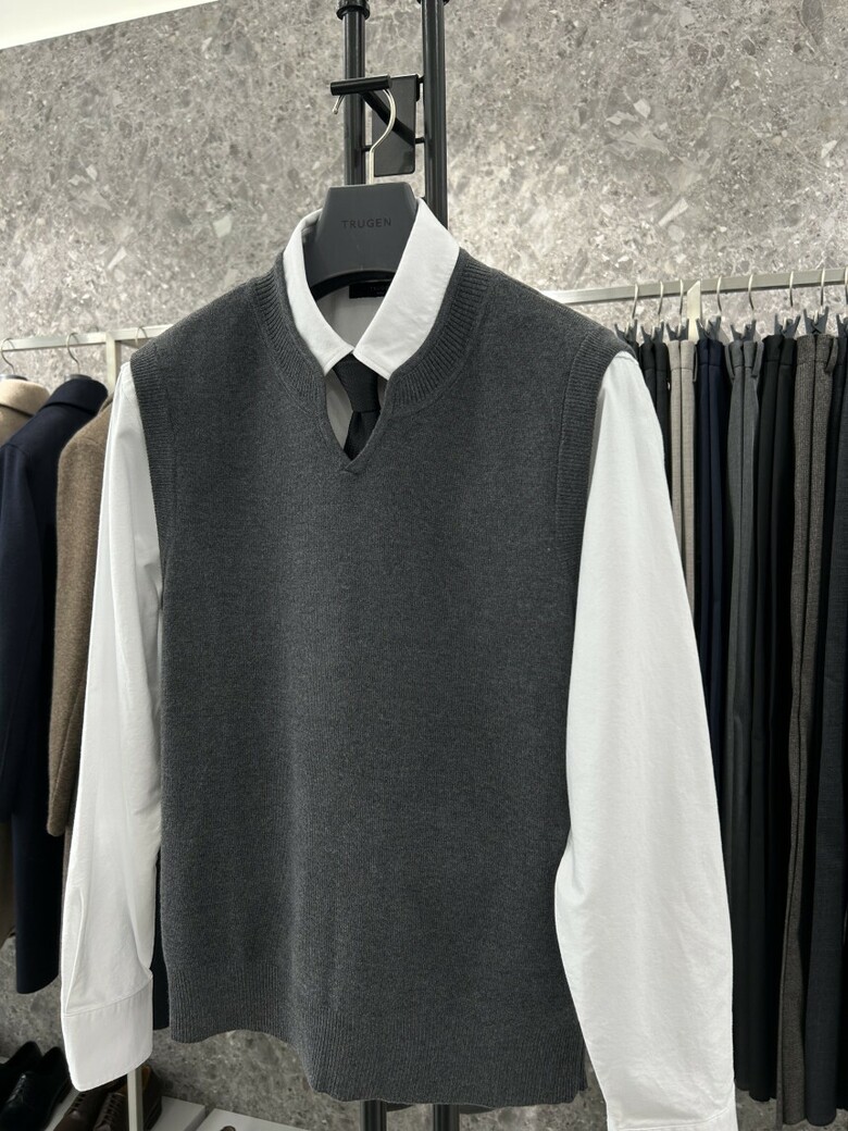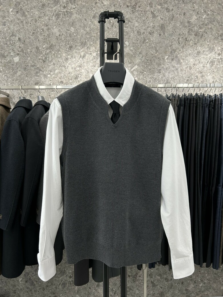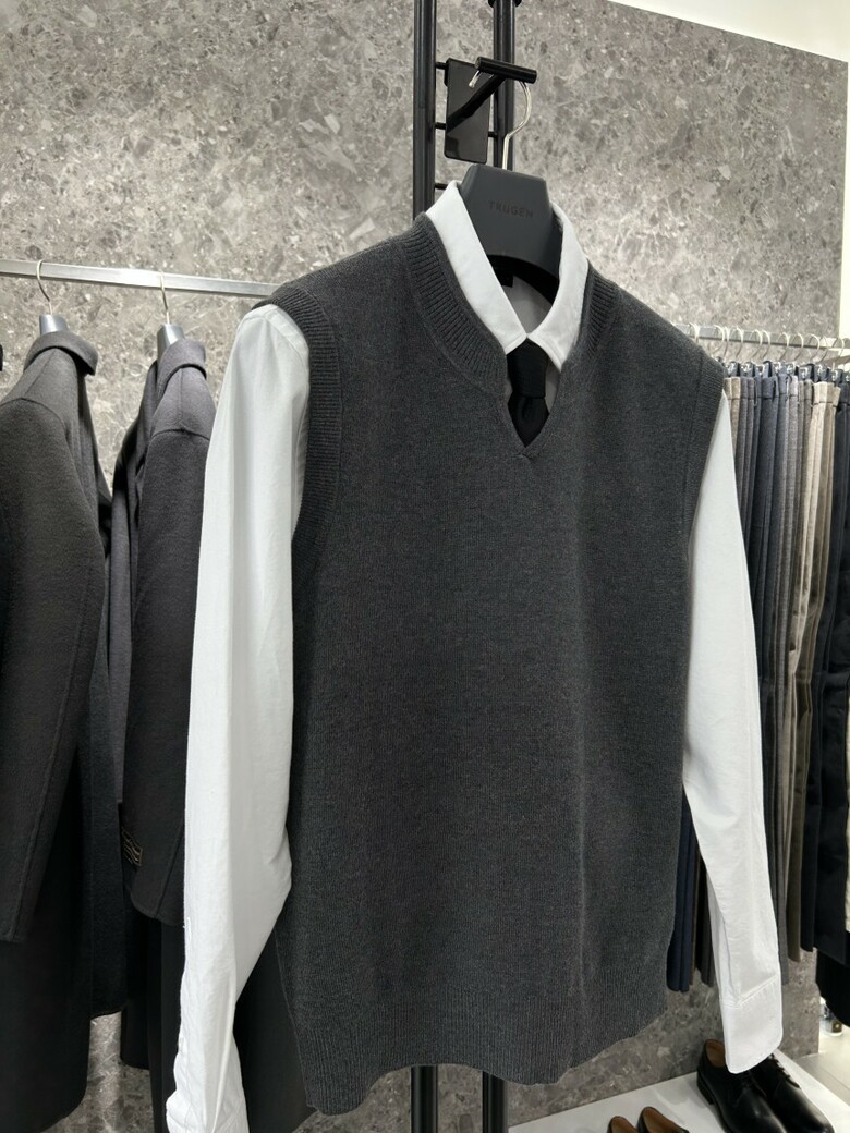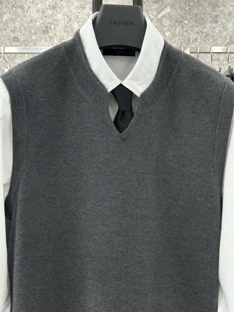 (트루젠) 차콜 울혼방 브이넥 베스트 비지니스 캐주얼 조끼 FI8818001064