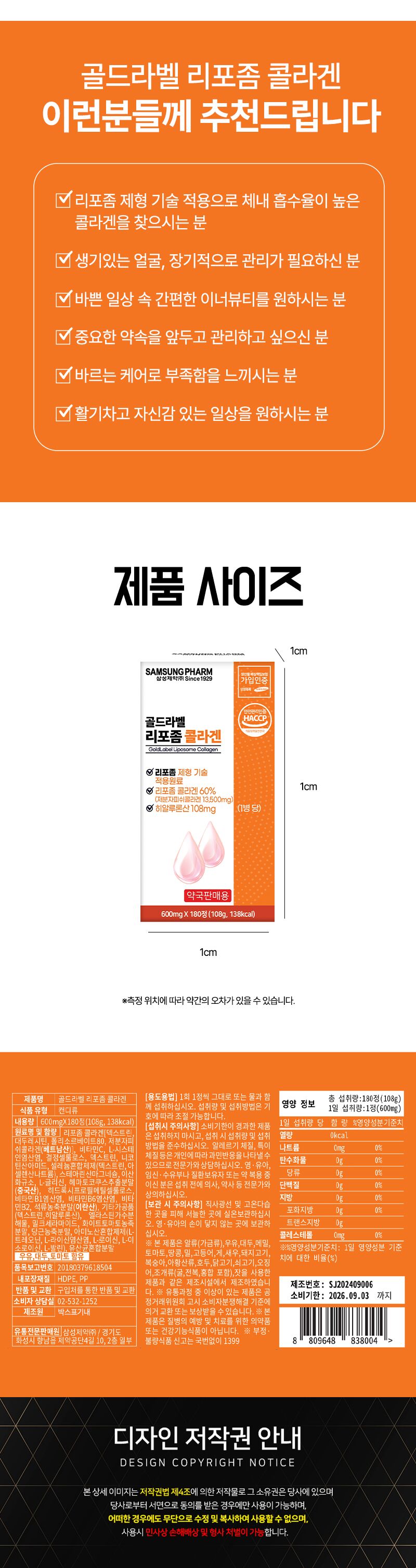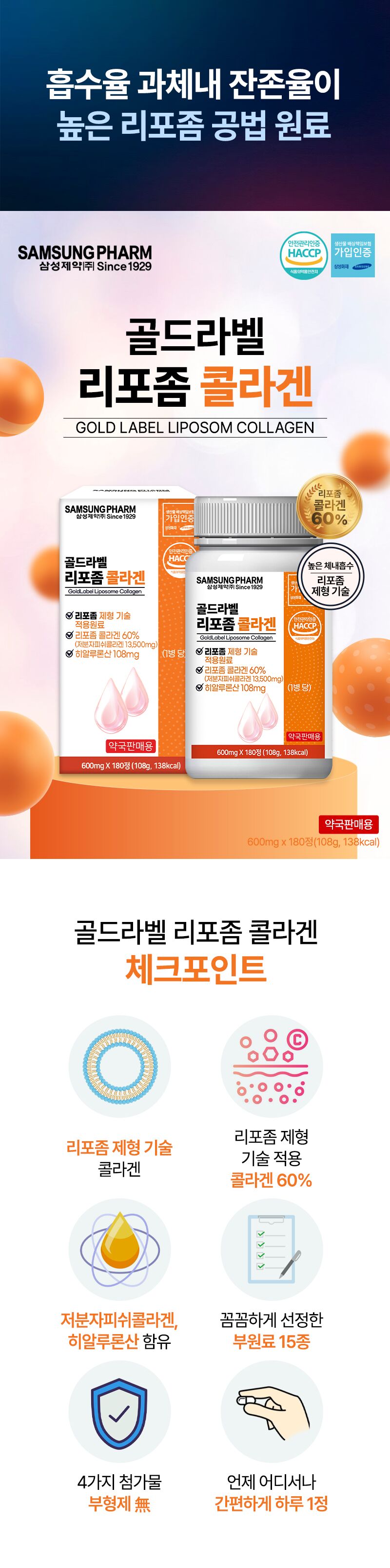 삼성제약 골드라벨 리포좀 콜라겐 600mgX180정