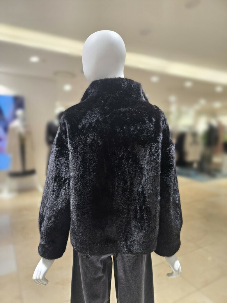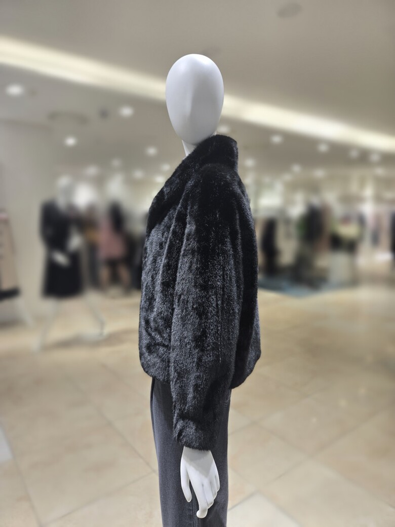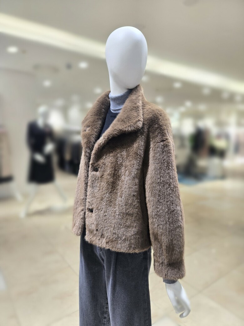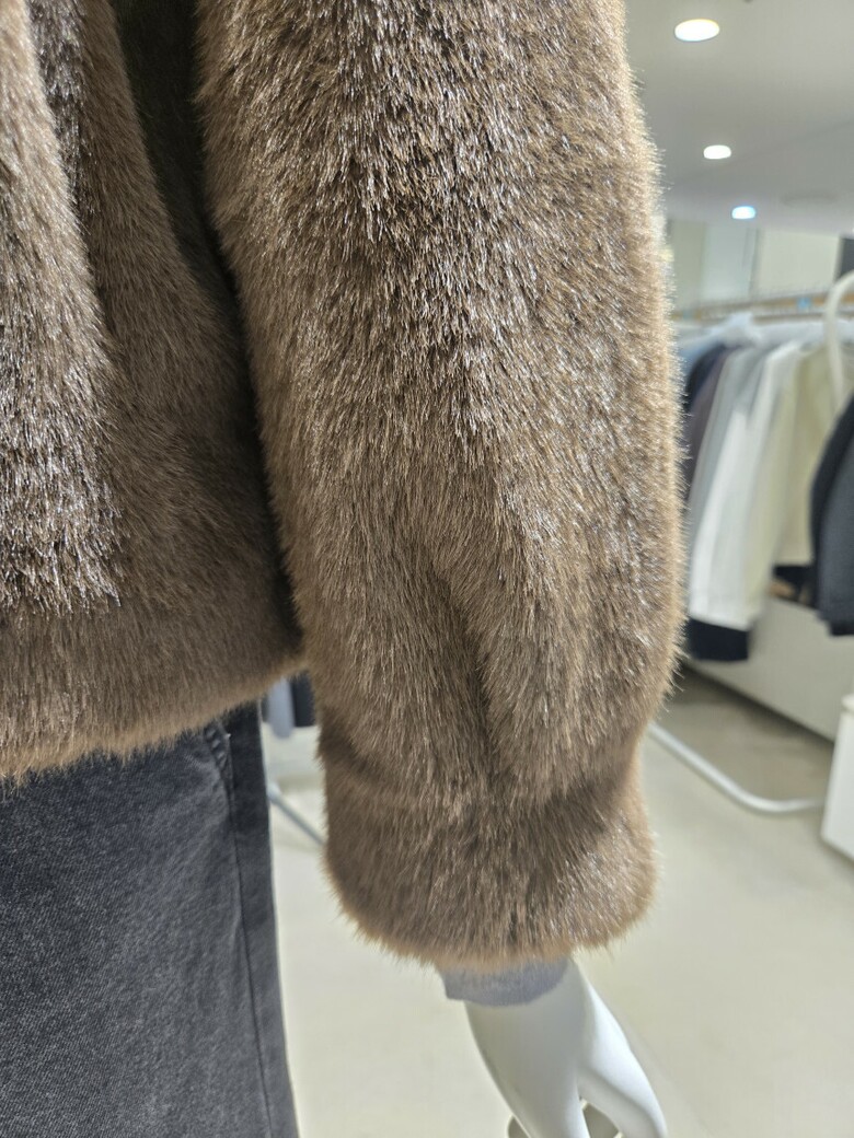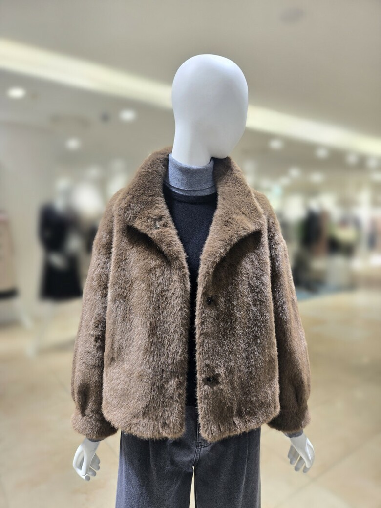 페이크 퍼 퍼프 소매 하이넥 자켓 YM5W-M603