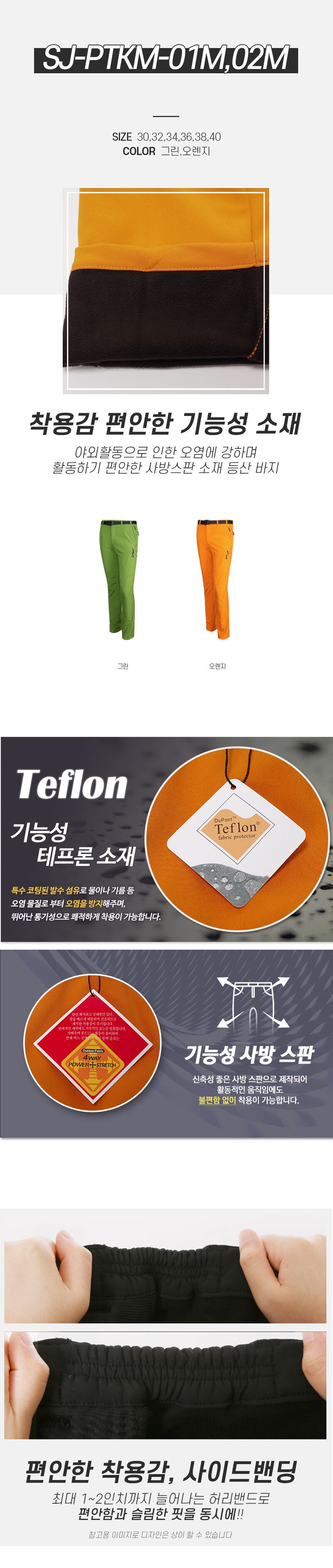 멘즈 사방스판 노턱 사이드밴딩 기모안감 등산바지 SJ-PTKM-01M