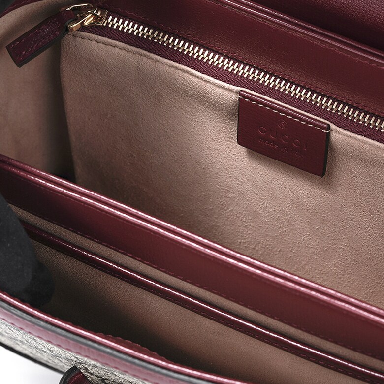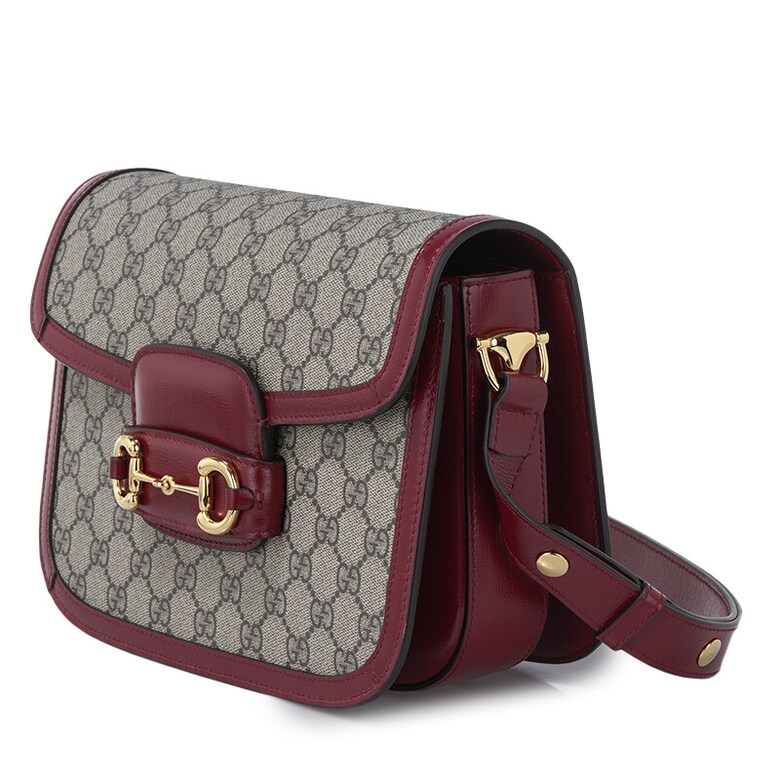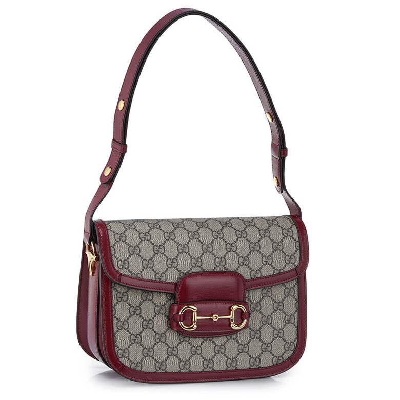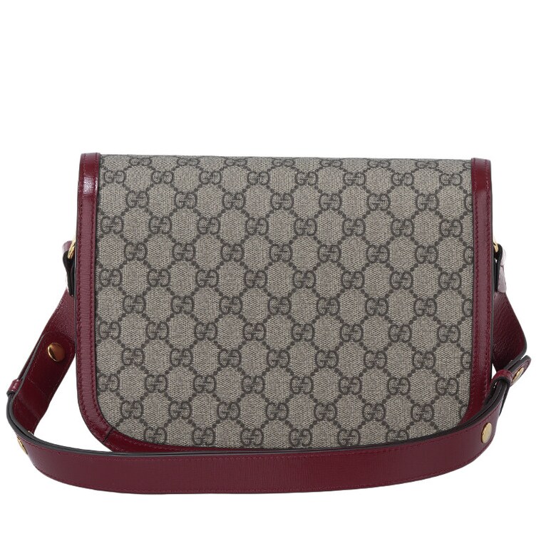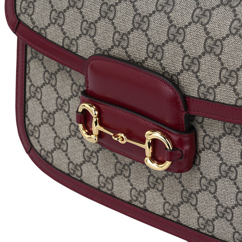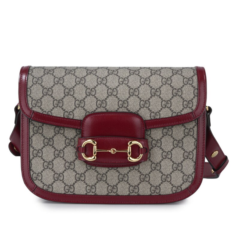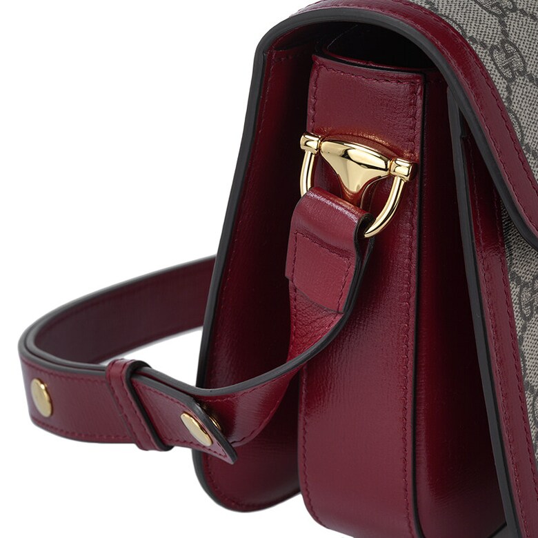 - Beige/ebony GG Supreme canvas, a material with low environmental impact, with red leather trim - Gold-toned hardware - Microfibre lining with a suede-like finish - Each bag will ship with a small pouch containing two additional button covers that can be used to cover the exposed studs when the shoulder strap is lengthened - Horsebit detail at the front - Half Horsebit detail at each side - Three gussets with one zipper and one open pocket - Shoulder strap with snap buttons can be adjusted from a 25cm to 45cm drop