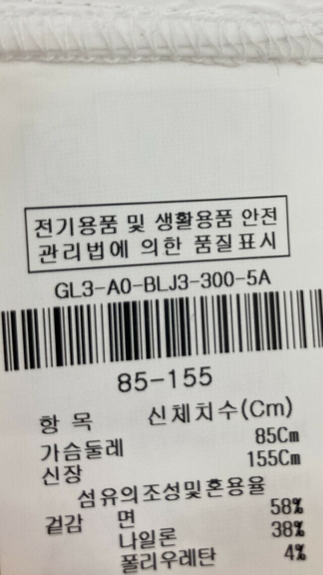 | 1. 제품 소재 (섬유의 조성 또는 혼용률을 백분율로 표시, 기능성인 경우 성적서 또는 허가서) | 겉감:면 58%, 나일론 38%, 폴리우레탄 4% |