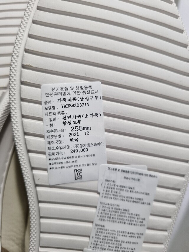 | 1. 제품 소재 (운동화인 경우에는 겉감, 안감을 구분하여 표시) | 소가죽 |