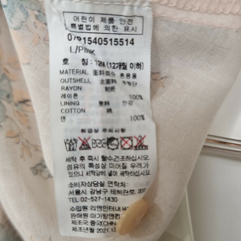 | 7. 세탁방법 및 취급시 주의사항 | 상세페이지 참조 |
