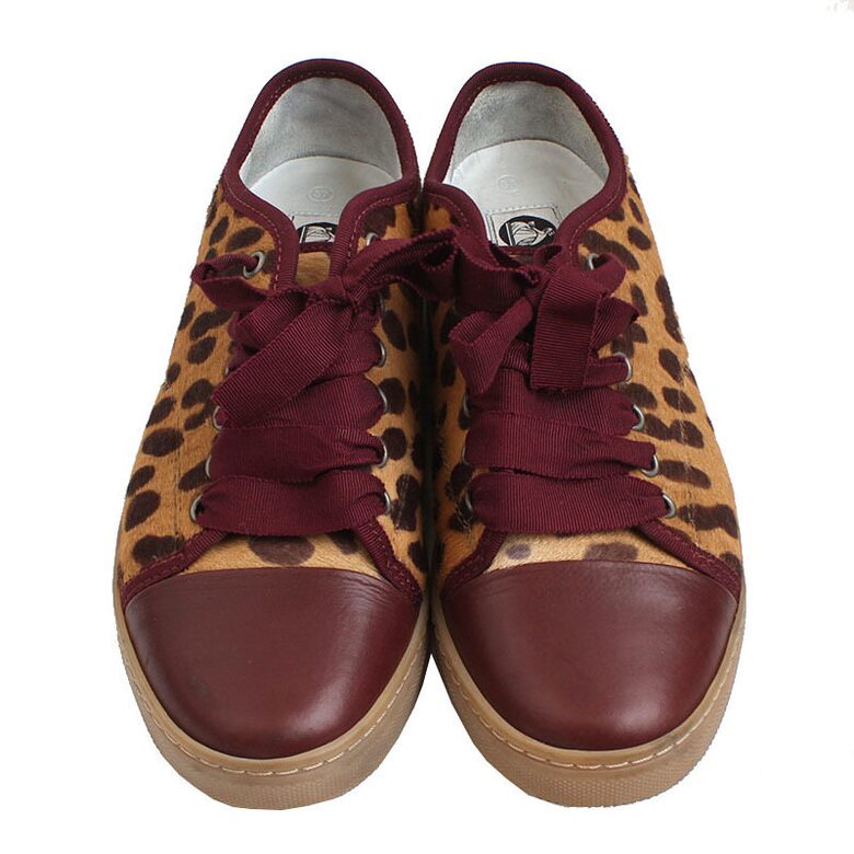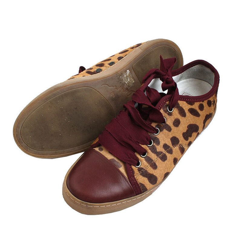 [중고명품] 랑방 와인 송치 레오파드 캡토 스니커즈 37