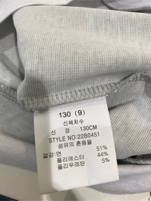 | 1. 제품 소재 (섬유의 조성 또는 혼용률을 백분율로 표시, 기능성인 경우 성적서 또는 허가서) | 면51%,폴리에스터44%,폴리우레탄5% |