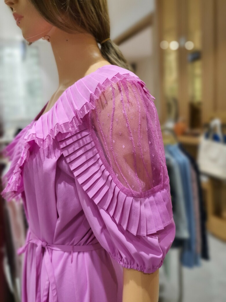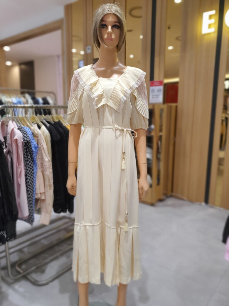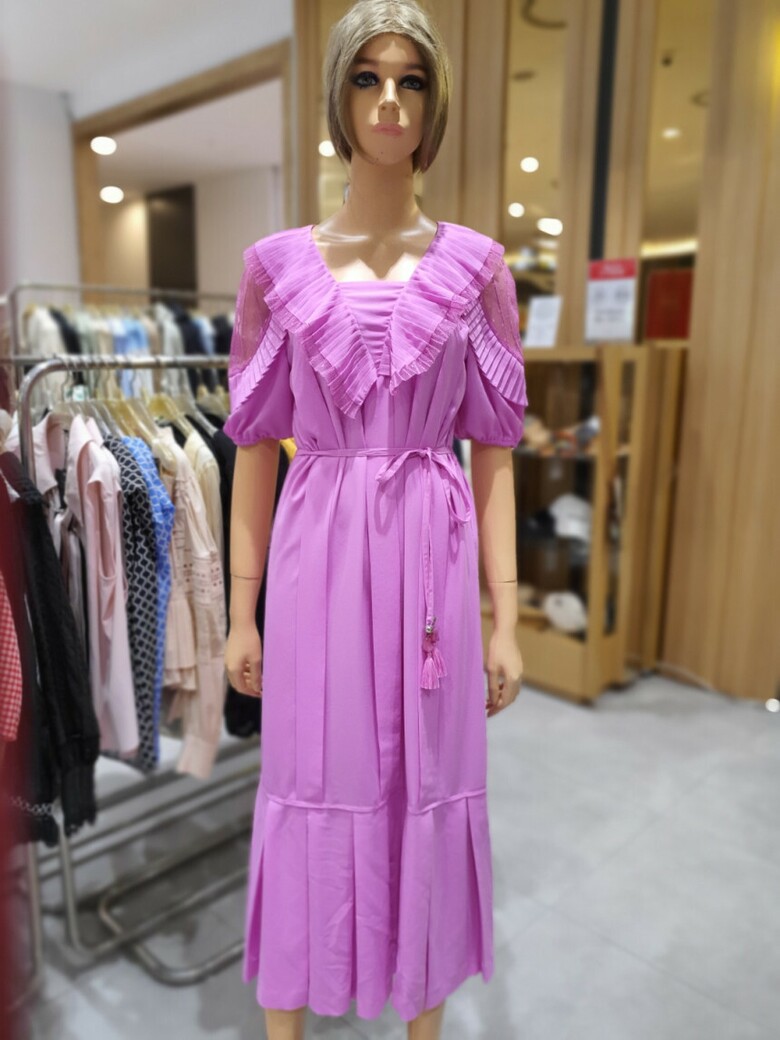 소매 레이스 포인트 플리츠 장식 원피스 EM2WO-668