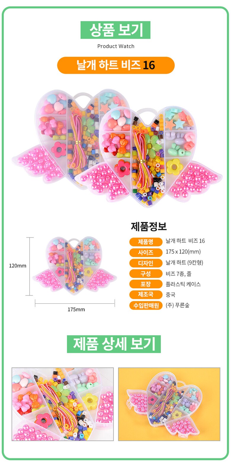 낱개하트비즈16/175*120mm/플라스틱케이스(9칸형-7종혼합)-1개