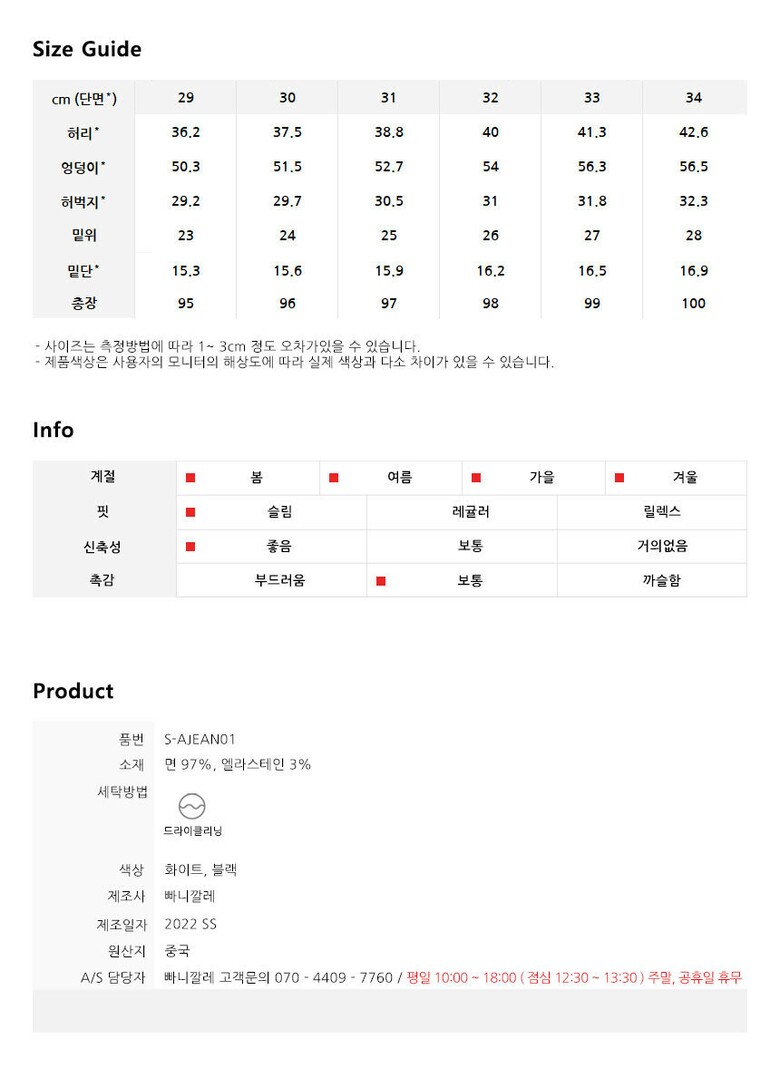 빠니깔레 화이트&블랙 슬림스판 롤업진 S-AJEAN01