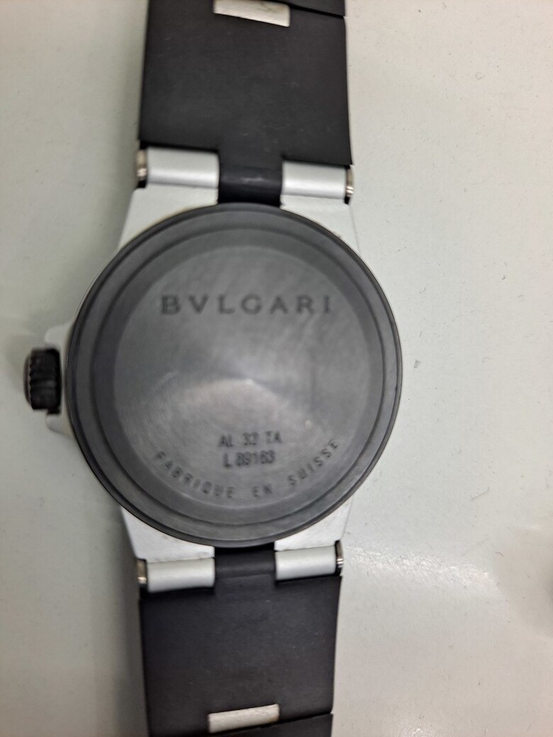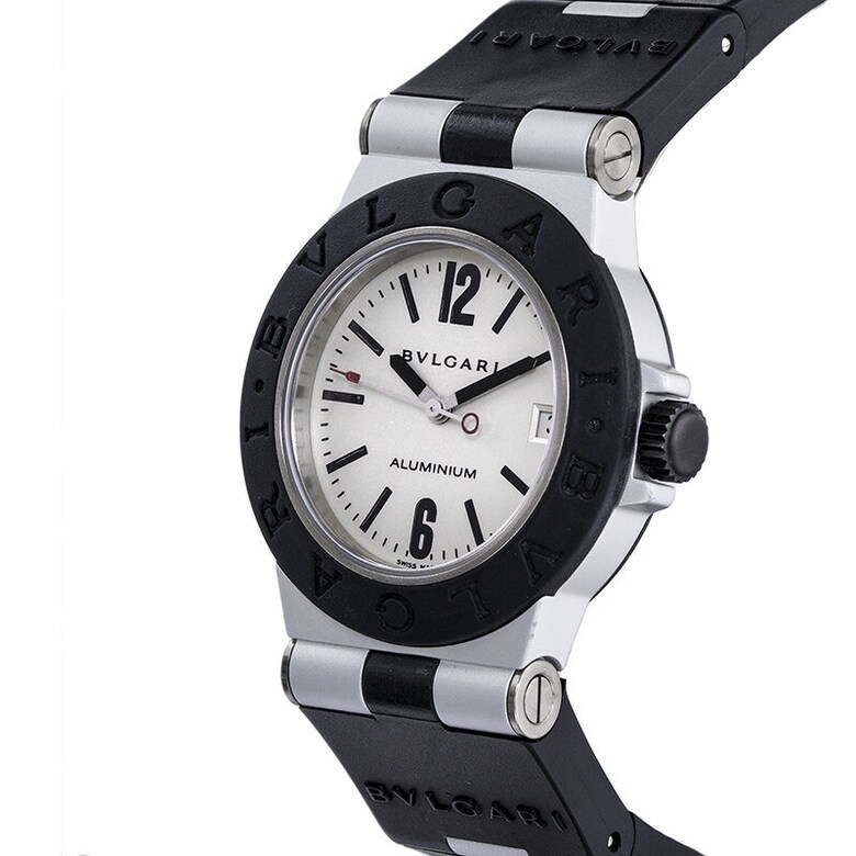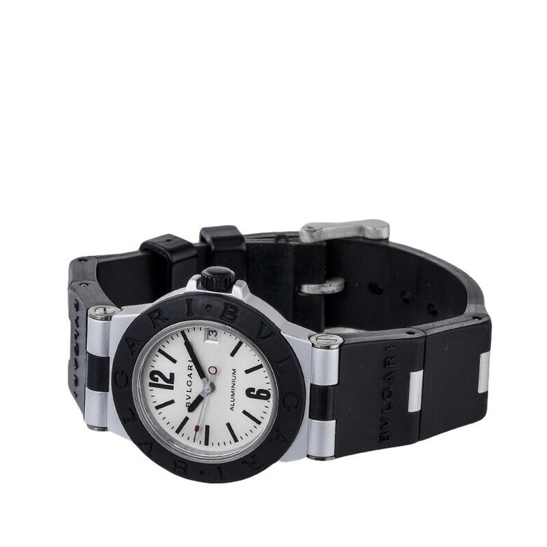 [중고명품] 불가리 블랙 화이트 디아고노 러버 쿼츠 알루미늄 시계 32mm