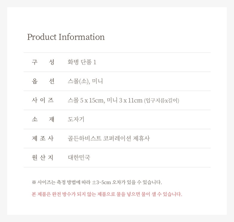 포홈 달호리 화병 2zise
