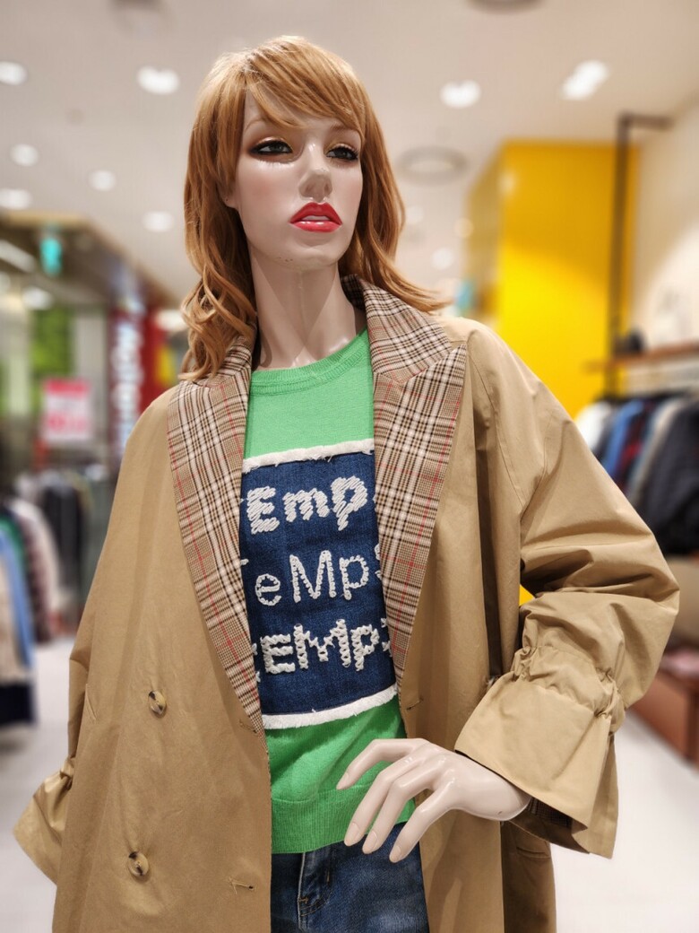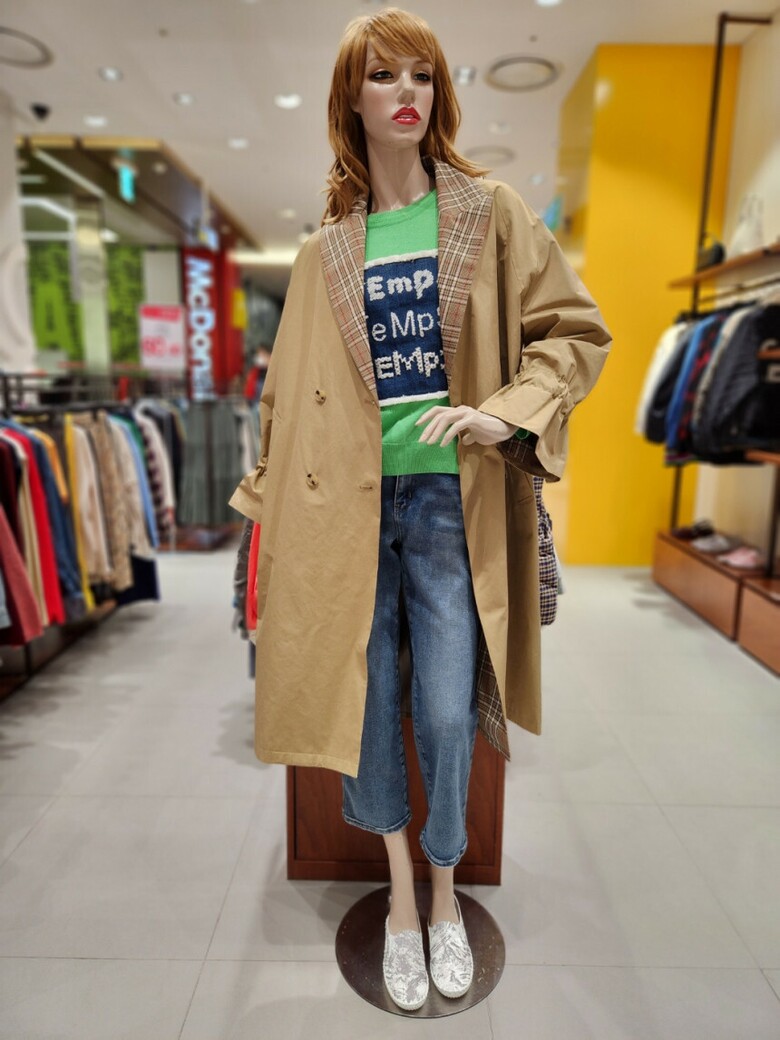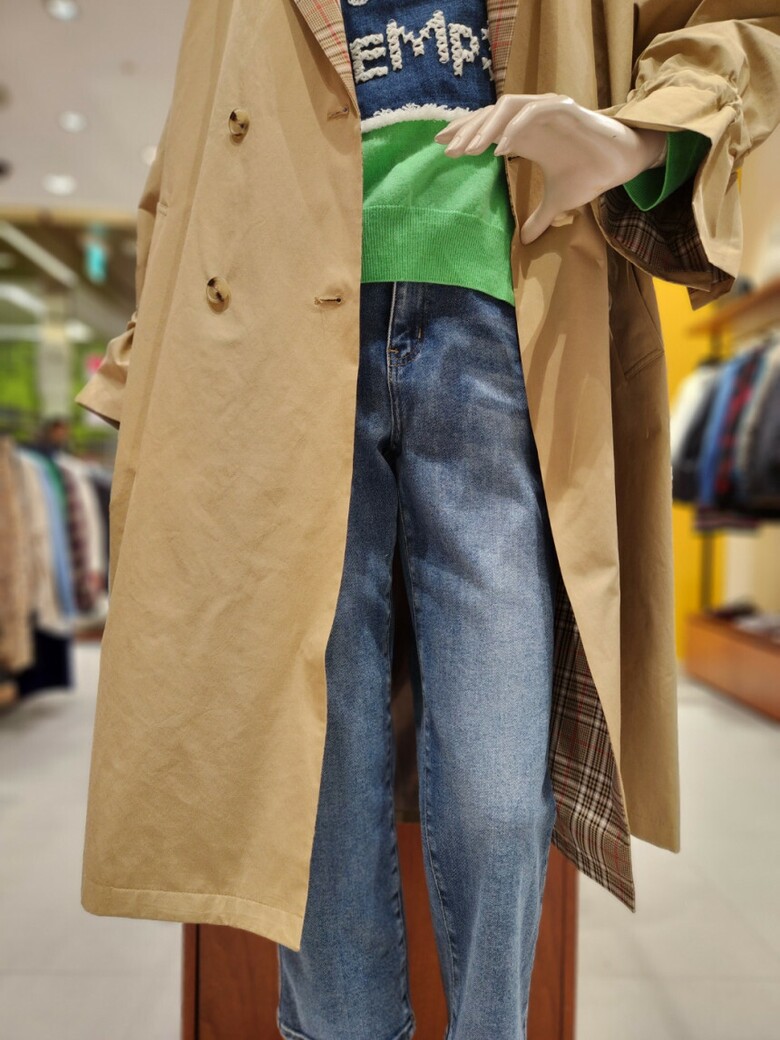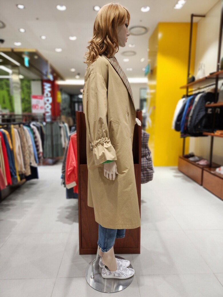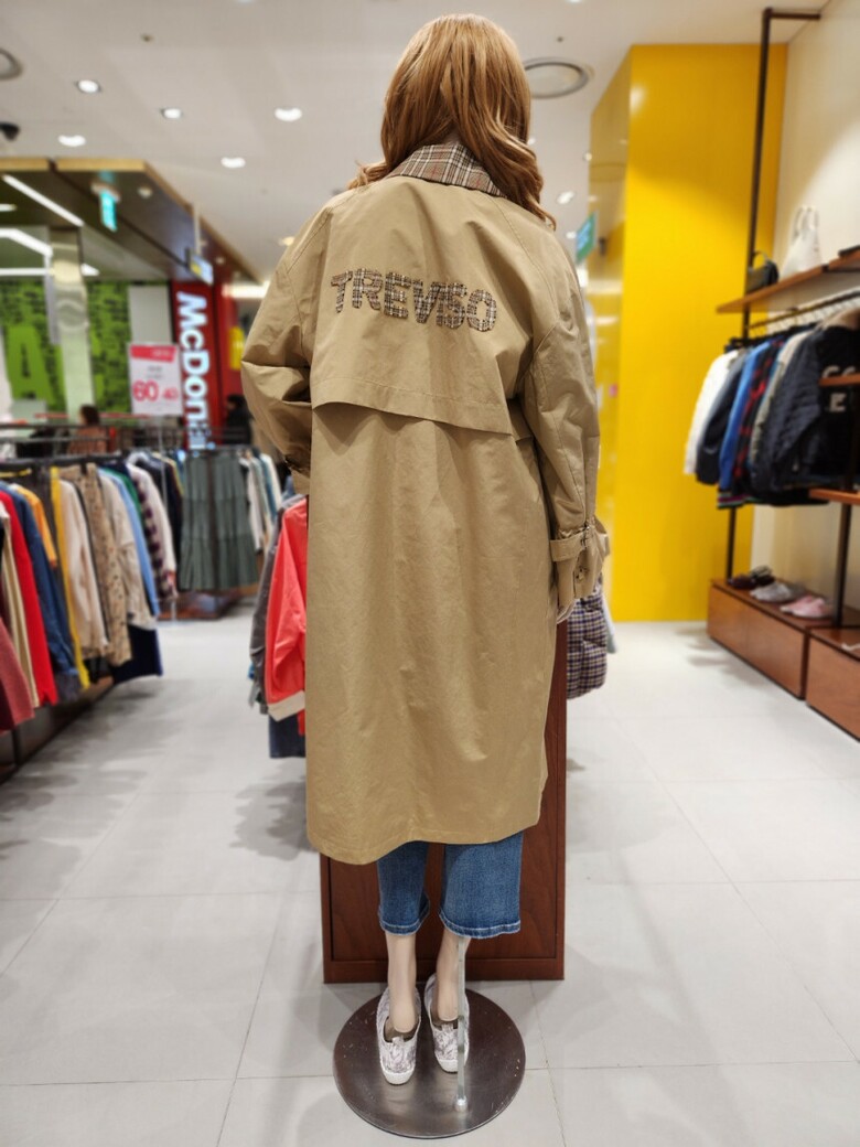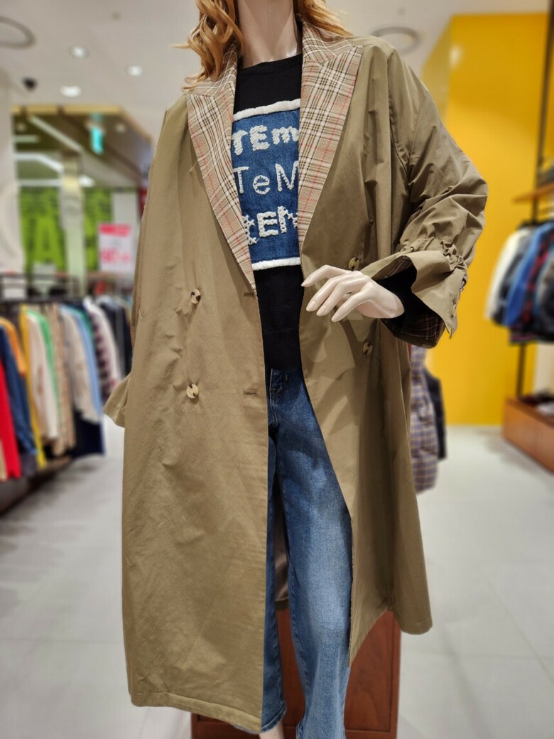 카라 체크 배색이 트렌디한 무드를 연출하는 트렌치 코트.