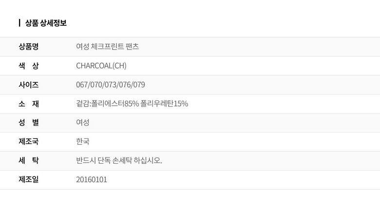 | 1. 제품 소재 (섬유의 조성 또는 혼용률을 백분율로 표시, 기능성인 경우 성적서 또는 허가서) | 겉감:폴리에스터85% 폴리우레탄15% |