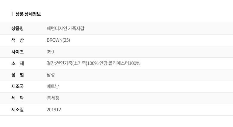 | 2. 소재 | 겉감:천연가죽(소가죽)100% 안감:폴리에스터100% |