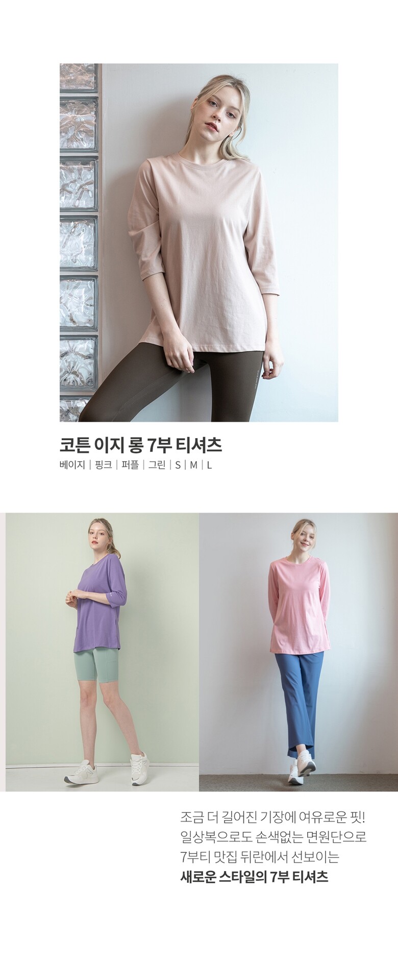 뒤란 코튼 이지 롱 7부 티셔츠 DTF3S-4116 4colors