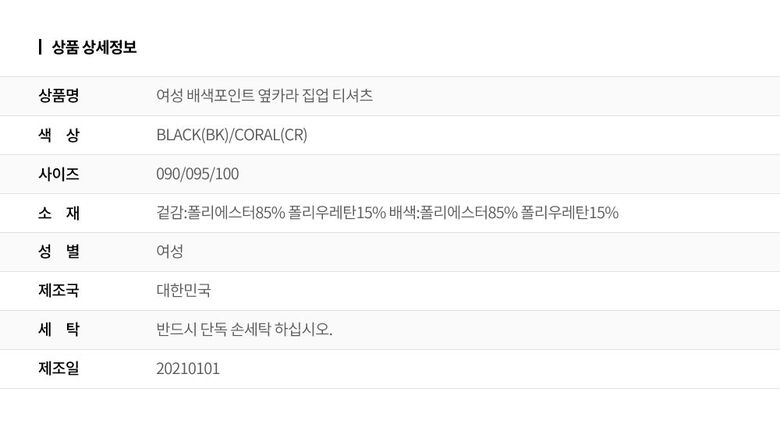 | 2. 색상 | BLACK(BK)/CORAL(CR) |