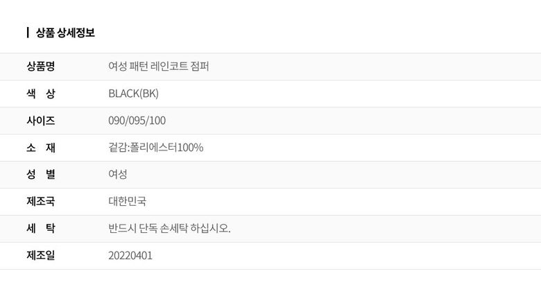 | 1. 제품 소재 (섬유의 조성 또는 혼용률을 백분율로 표시, 기능성인 경우 성적서 또는 허가서) | 겉감:폴리에스터100% |