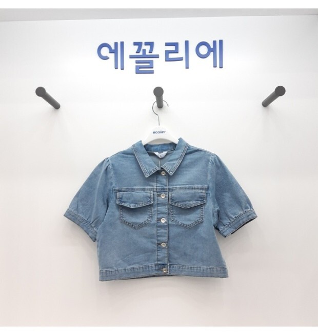 5부 퍼프 소매 데님 크롭자켓_22B1552