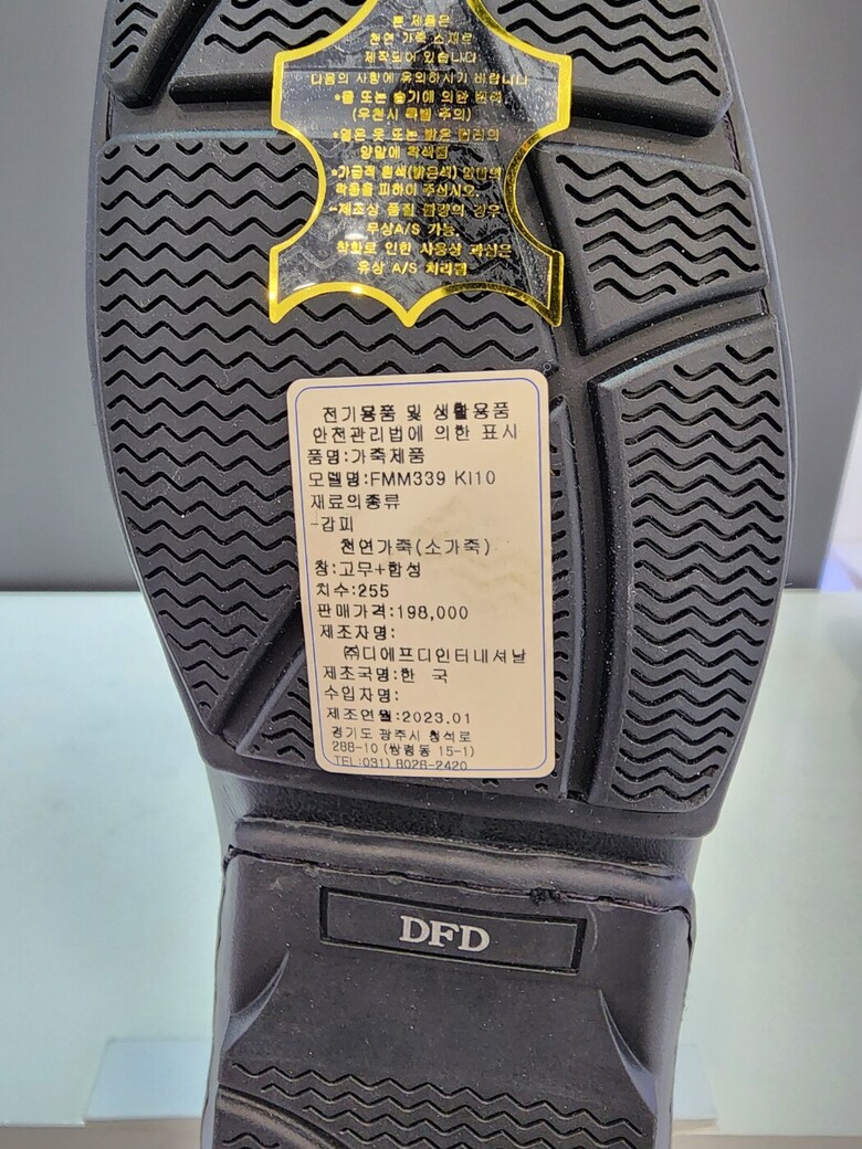| 1. 제품 소재 (운동화인 경우에는 겉감, 안감을 구분하여 표시) | 소가죽 |