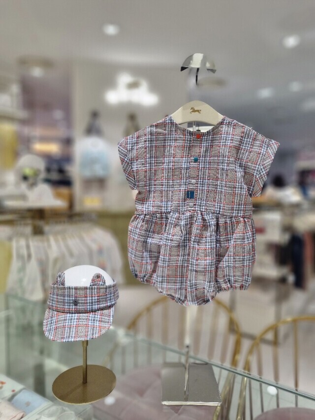 시원한 아사면 소재의 바디수트입니다 썬캡과 셋트입니다