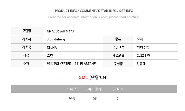 제이린드버그 22FW PARKER 골프 버킷햇 그린 GMAC06268 M473