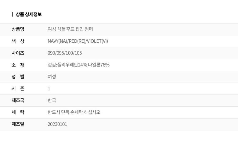 | 2. 색상 | NAVY(NA)/RED(RE)/VIOLET(VI) |