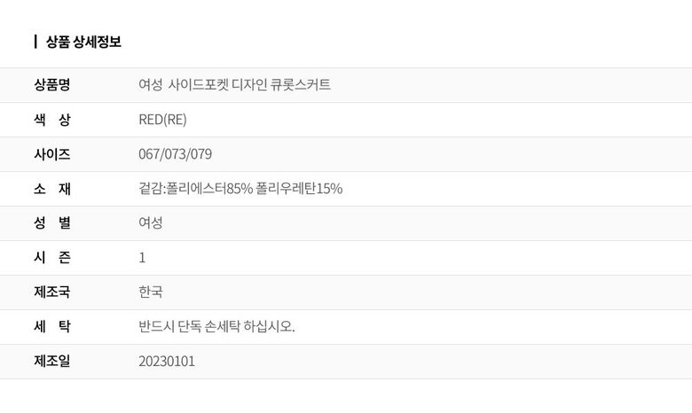 [23신상] 팜스프링스 여성 사이드포켓 디자인 큐롯스커트_SSKL231813