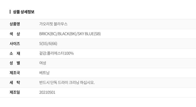 | 6. 세탁방법 및 취급시 주의사항 | 상세페이지 참조 |