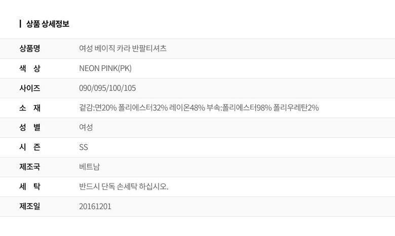 | 2. 색상 | NEON PINK(PK) |