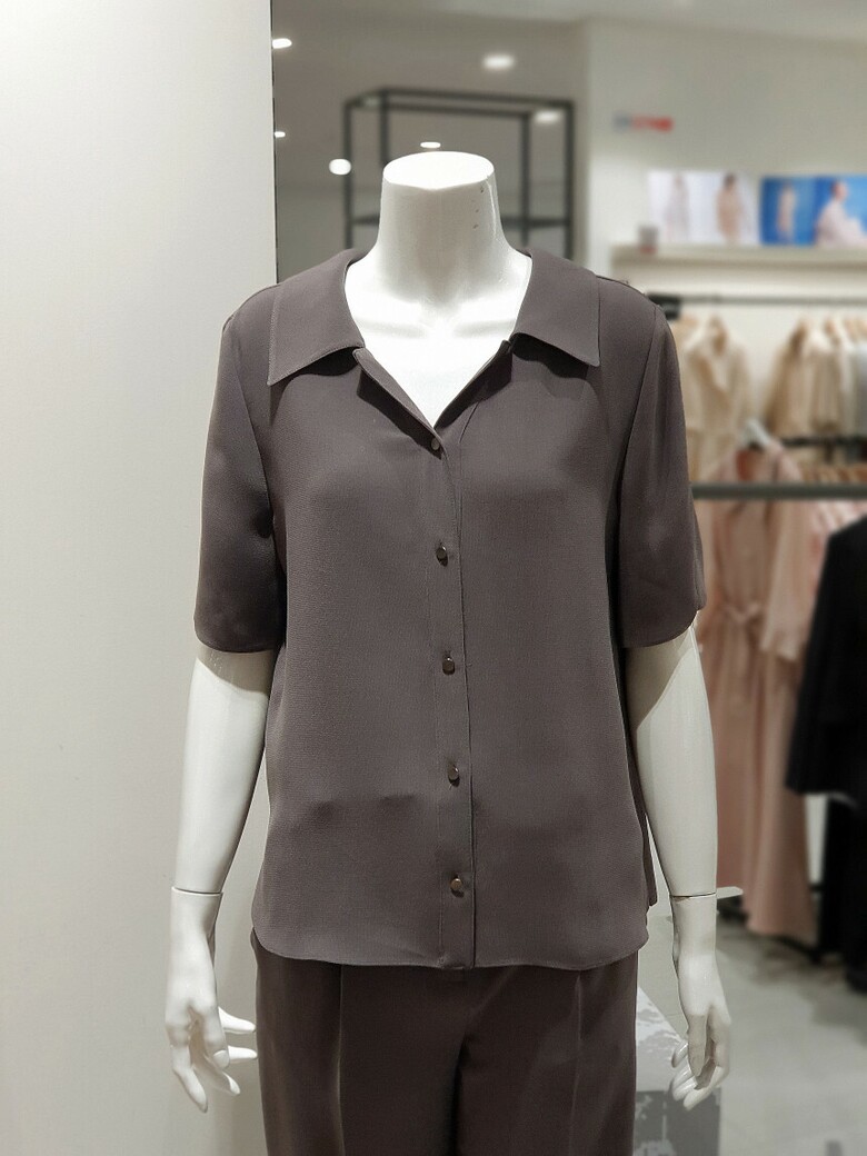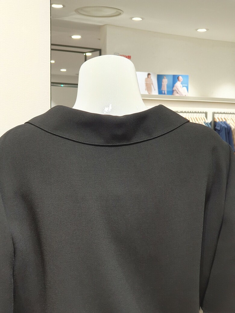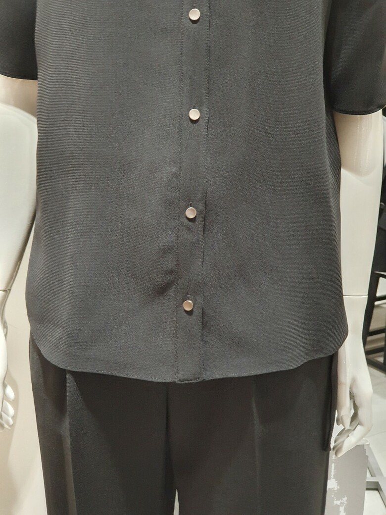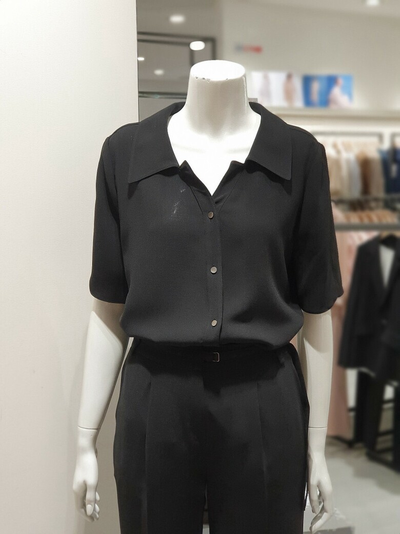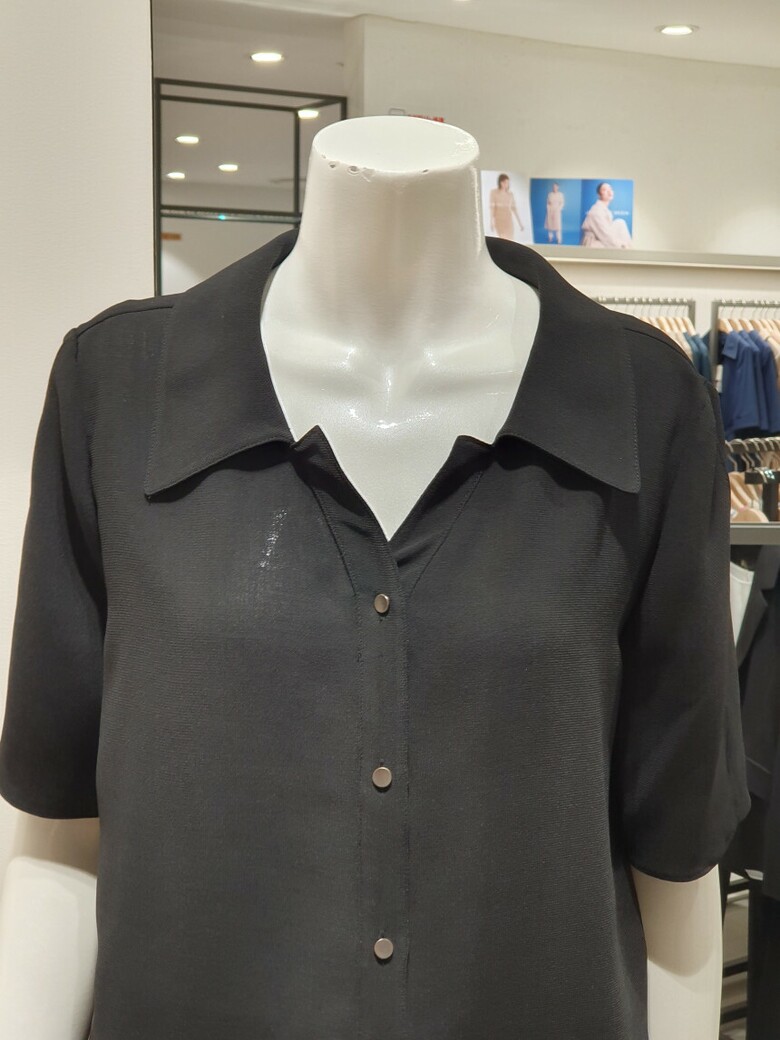 심플한 버튼과 오픈 카라로 포인트를 주고