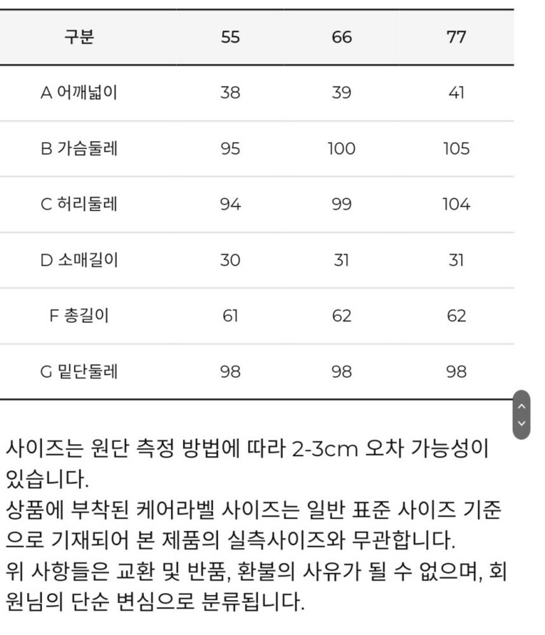· 안감 : □ 전체 ■ 부분 □ 없음