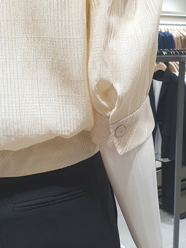 퍼프 소매로 페미닌한 실루엣이 연출되며