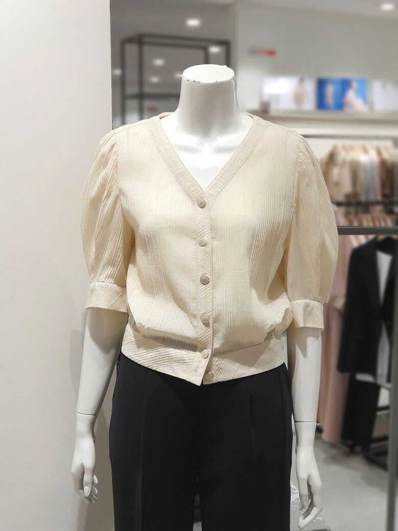 브이넥 버튼 블라우스 KWBLNE0600