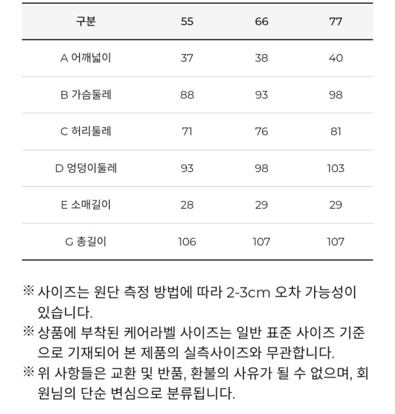 • 처음 배송된 상품상태와 다를 경우(세탁/착용 후 외출하신 경우) 반품이 불가합니다.