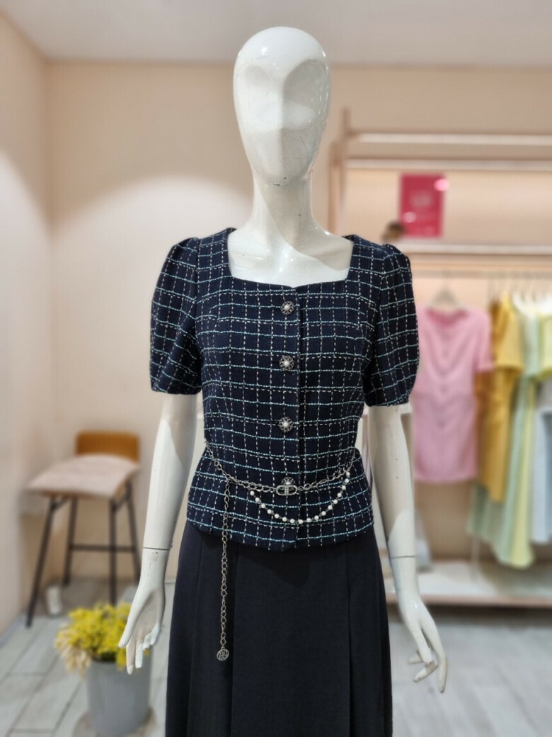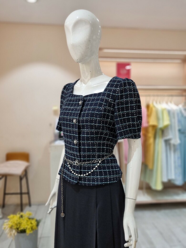 스퀘어넥 페플럼 트위드 재킷 GN6A0JK31