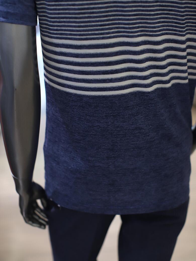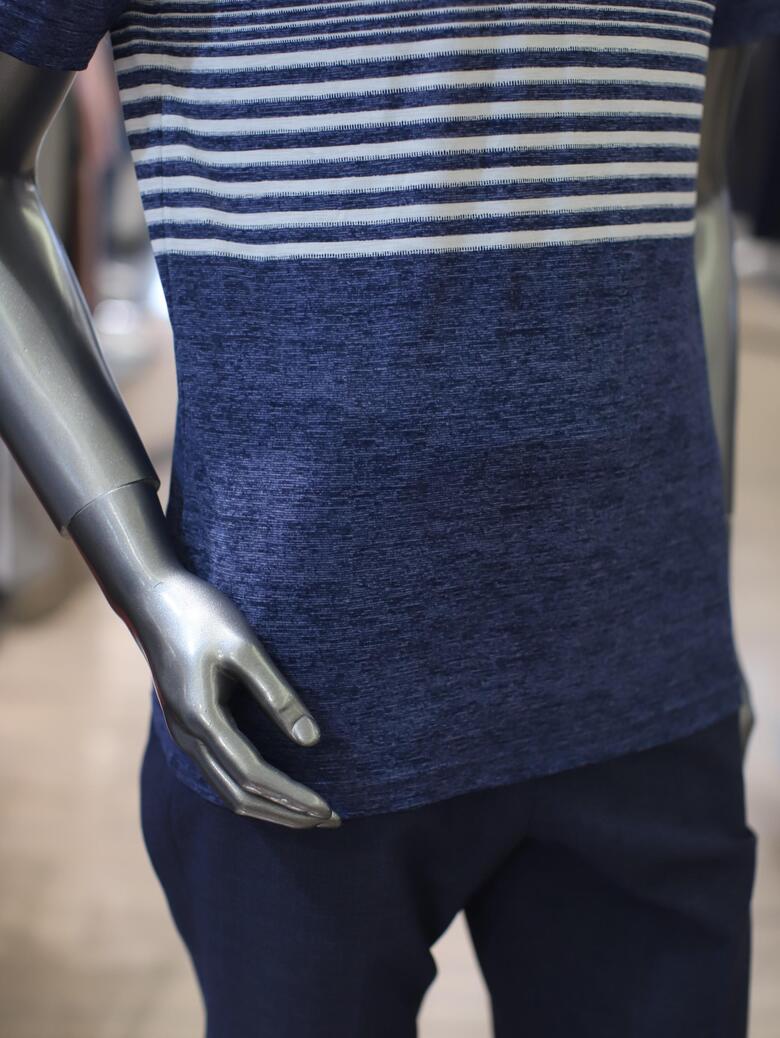 가슴쪽에 배색 스트라이프 패턴으로 단색옷들과 연출하기 매우좋습니다.