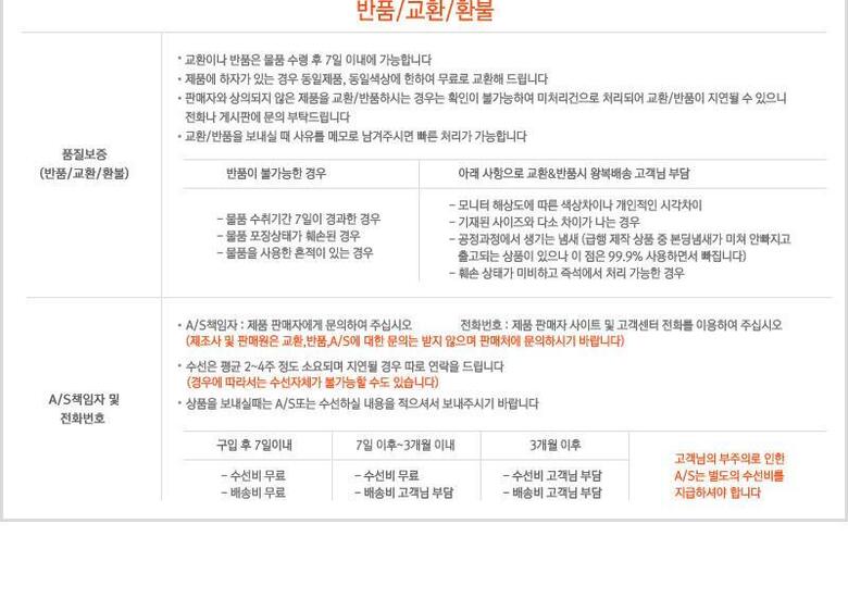 | 8. 품질보증기준 | 관련법 및 소비자분쟁해결기준에 따름 |