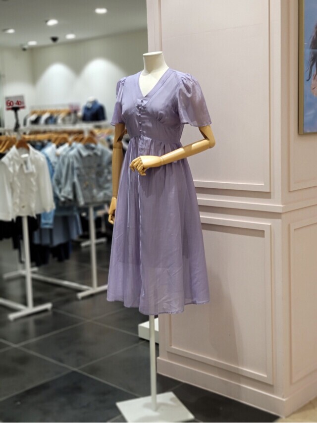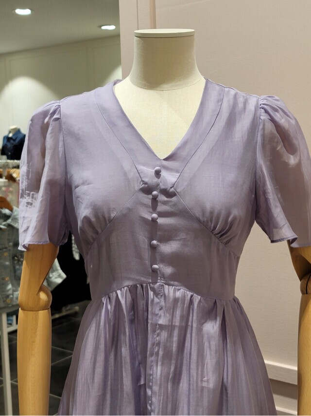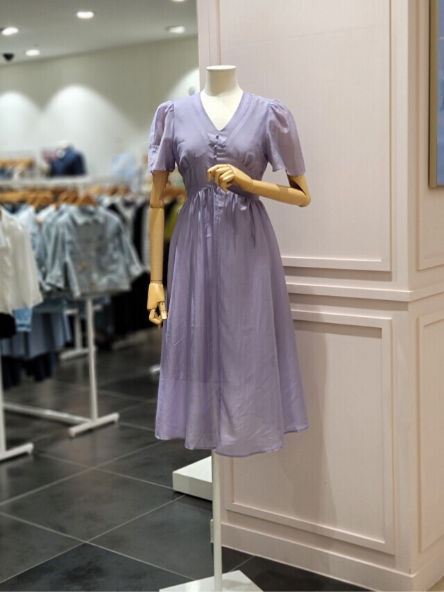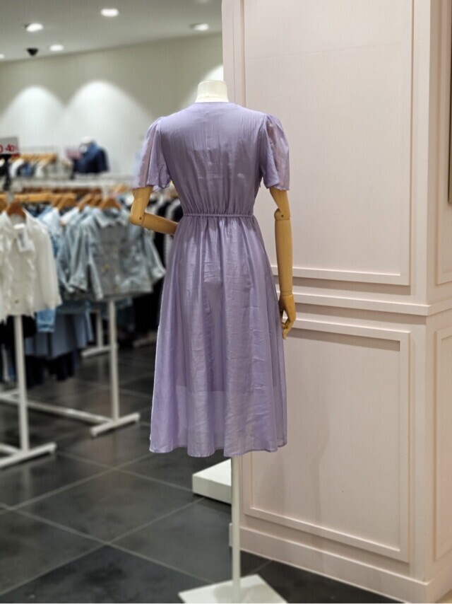 샤틴 트럼펫소매 브이넥롱원피스 S232k667