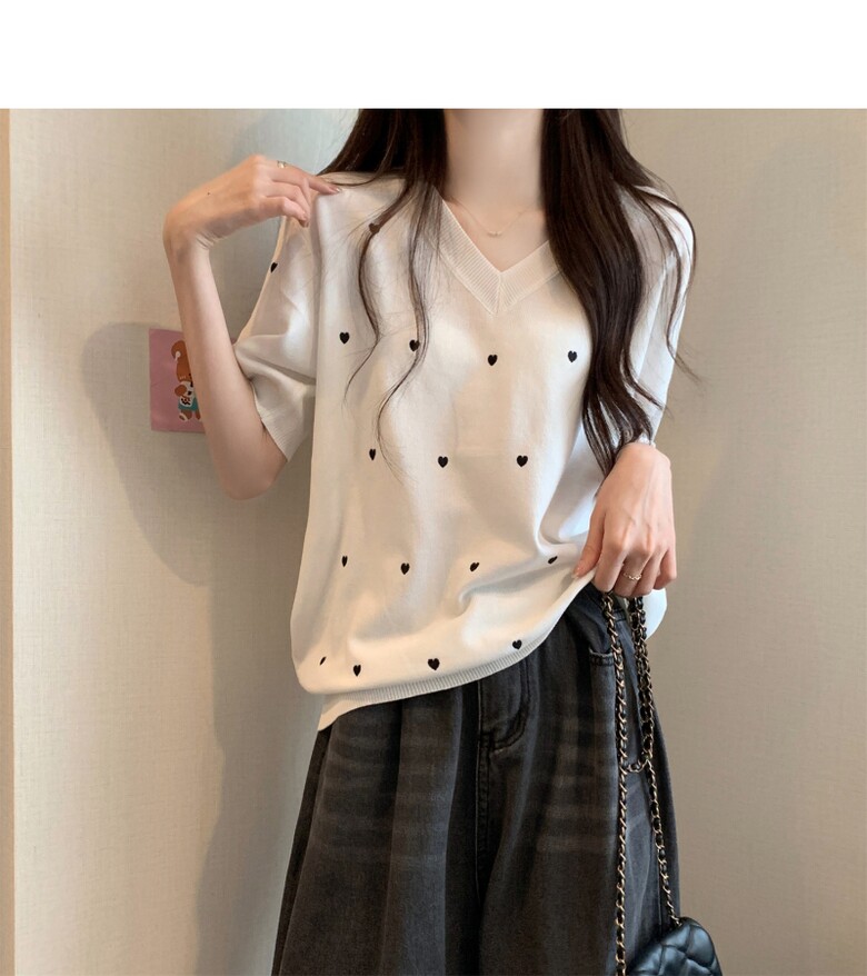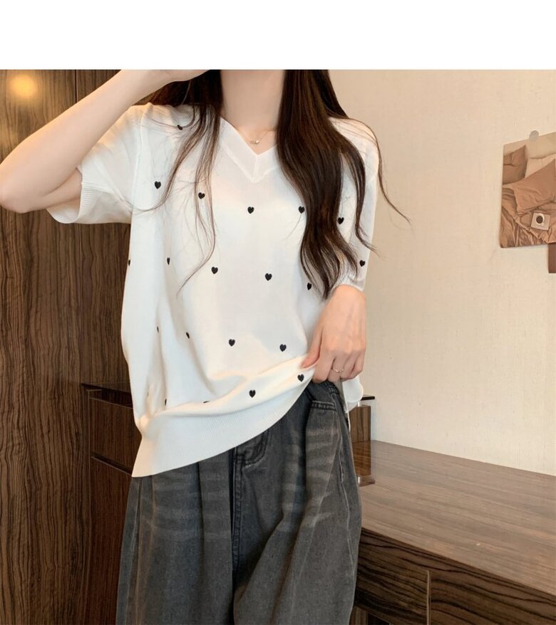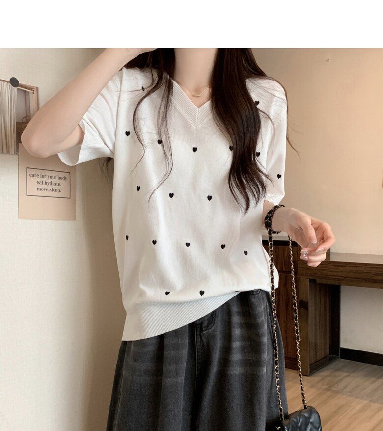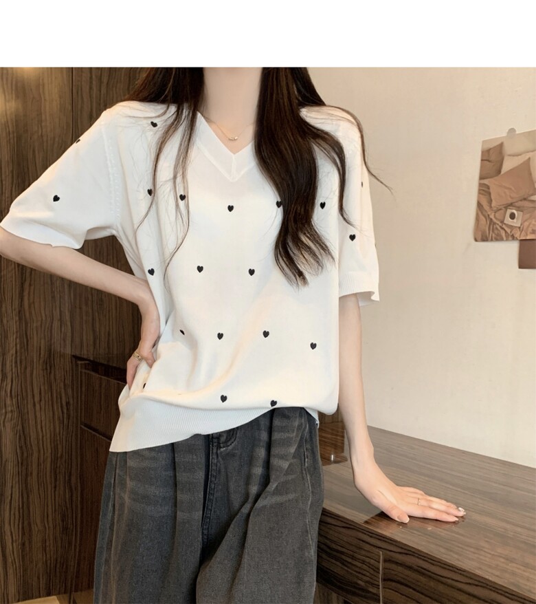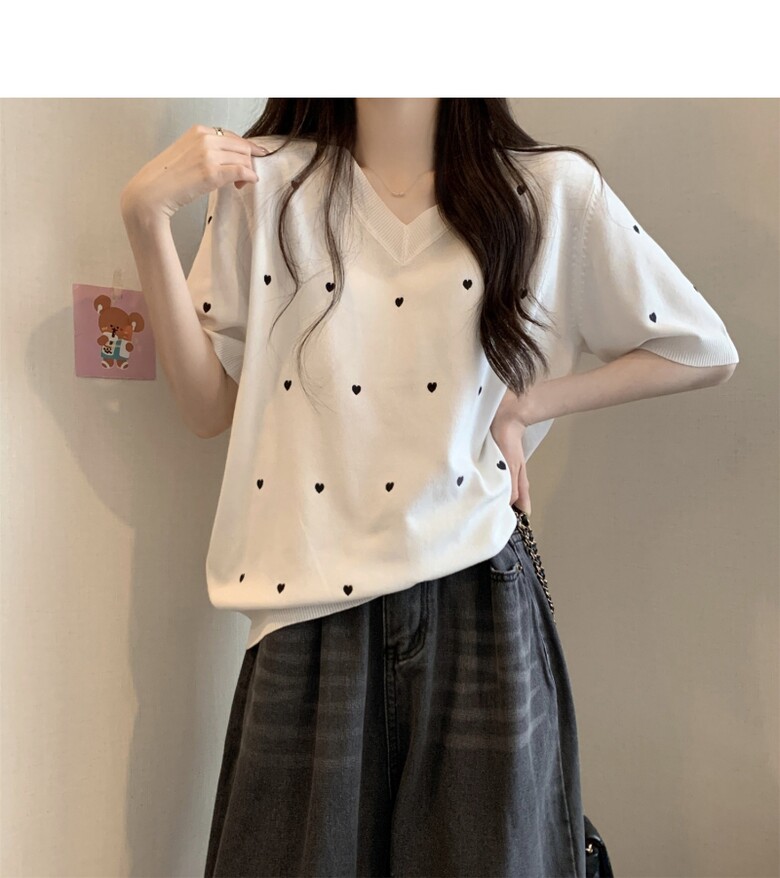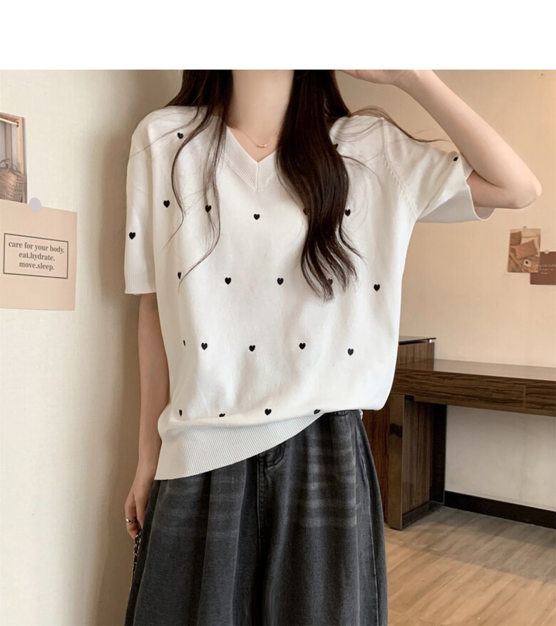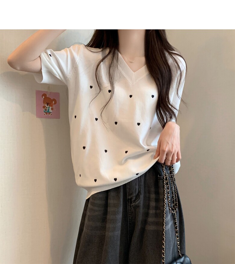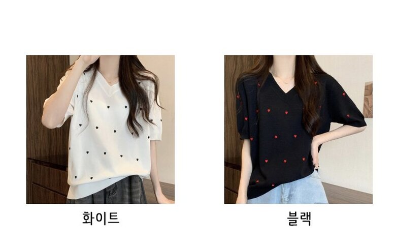 하트 도트 브이넥 반팔 2color