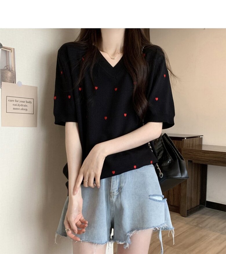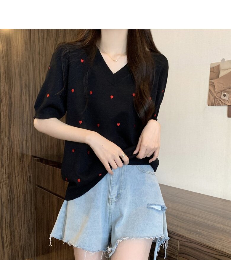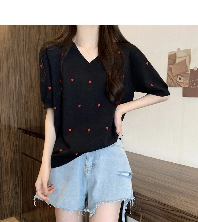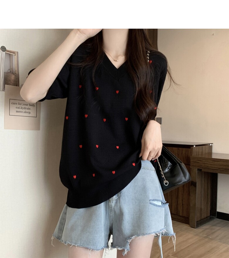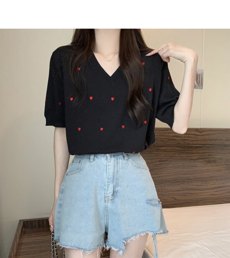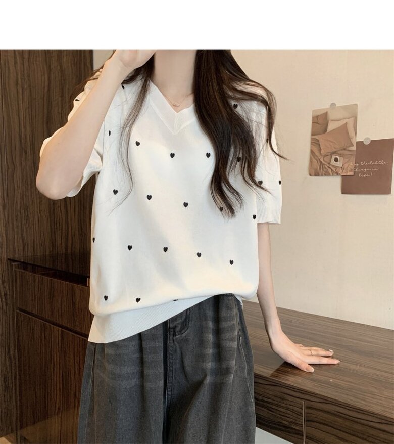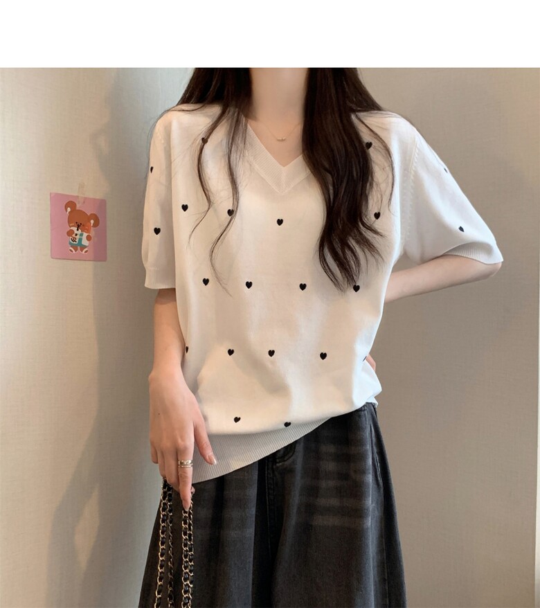 하트 도트 브이넥 반팔 2color