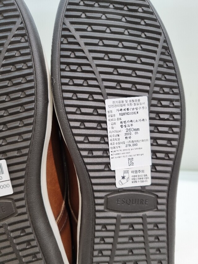 | 1. 제품 소재 (운동화인 경우에는 겉감, 안감을 구분하여 표시) | 소가죽 |