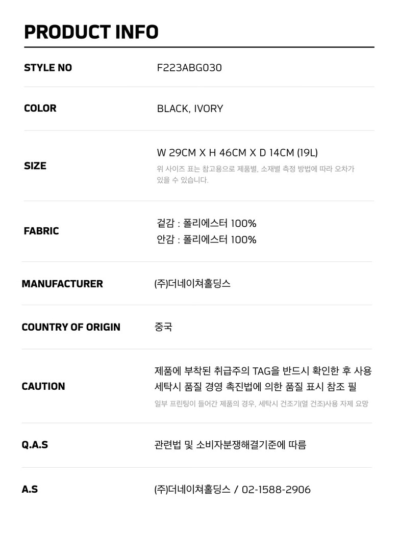 엔에프엘 F223ABG030 엔드 2 백팩 BLACK