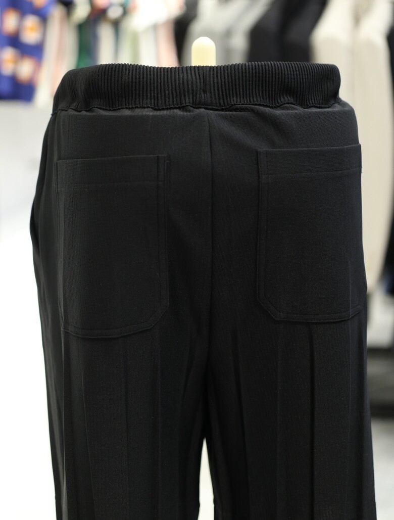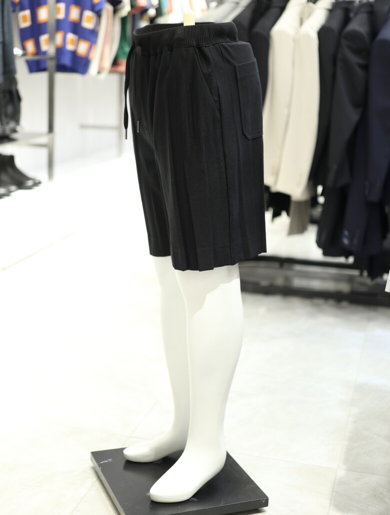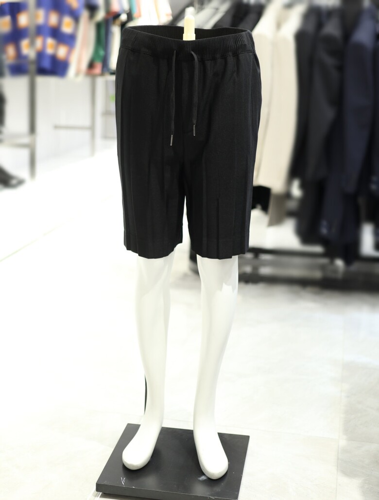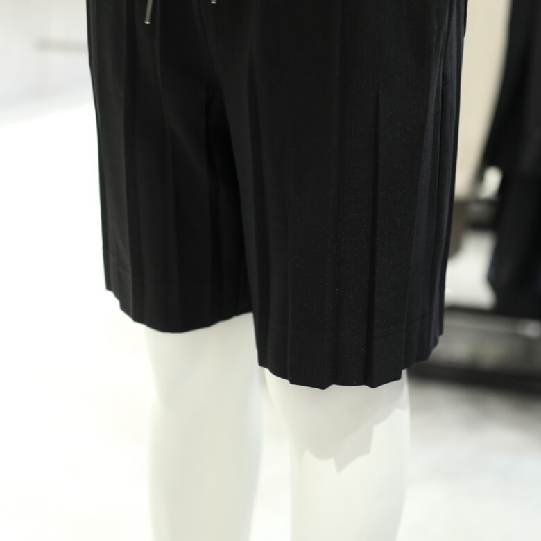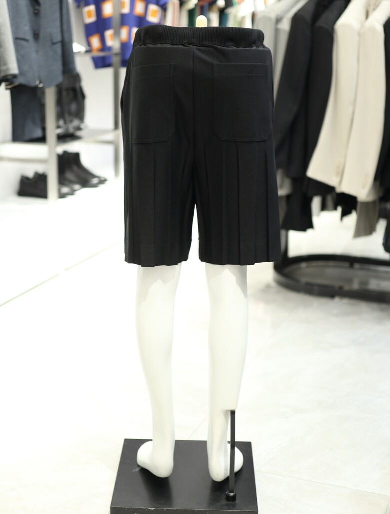 [가넷옴므] 블랙 루즈핏 플리츠 밴딩 숏 팬츠 GBS40250